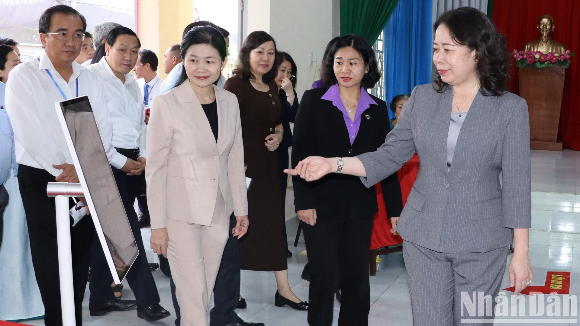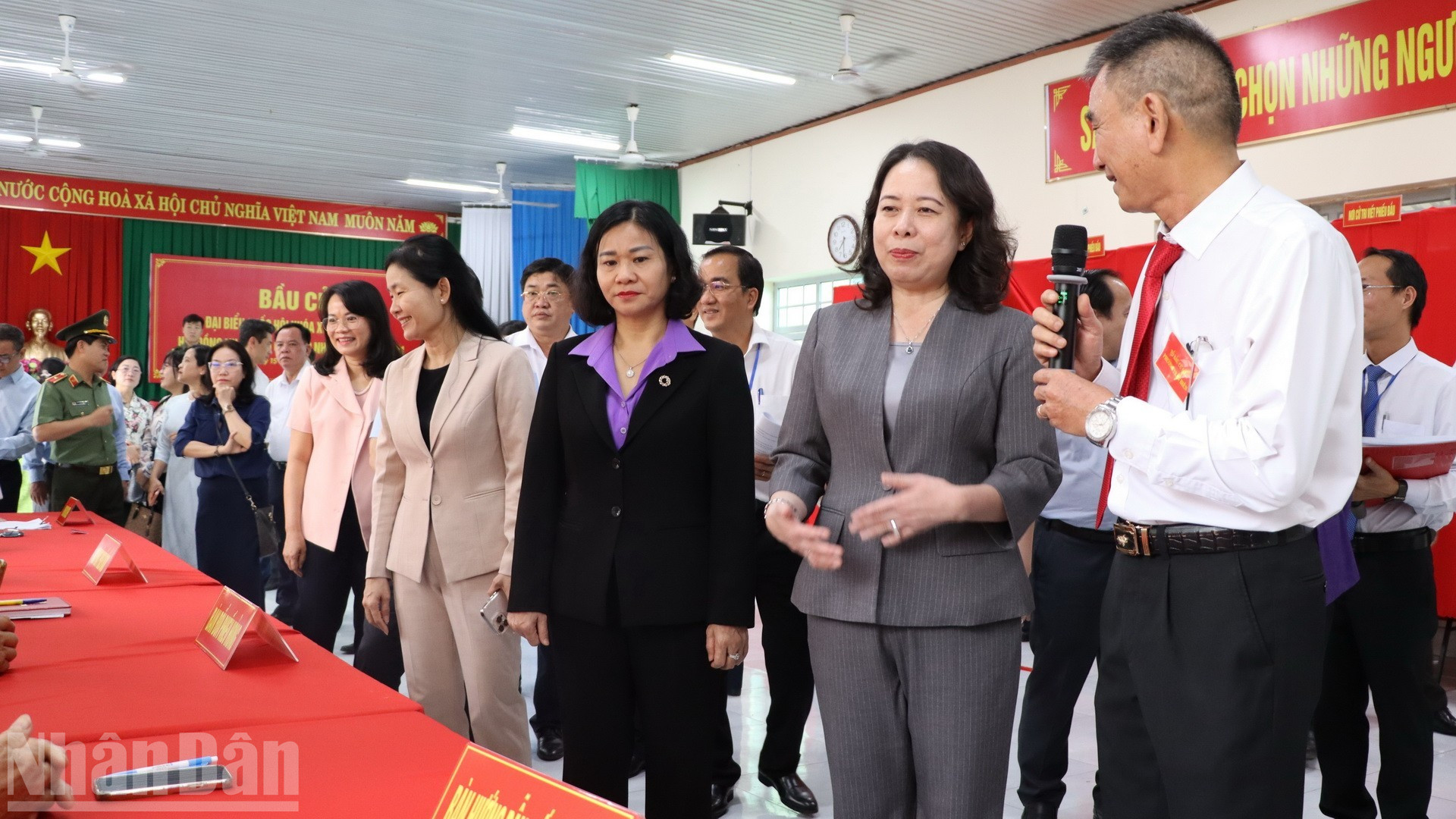Phó Chủ tịch nước Võ Thị Ánh Xuân kiểm tra điểm bầu cử số 32 phường Trấn Biên.