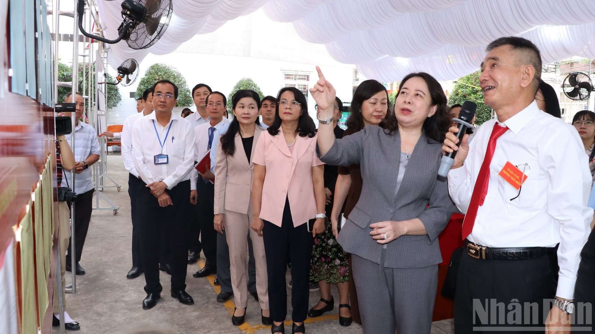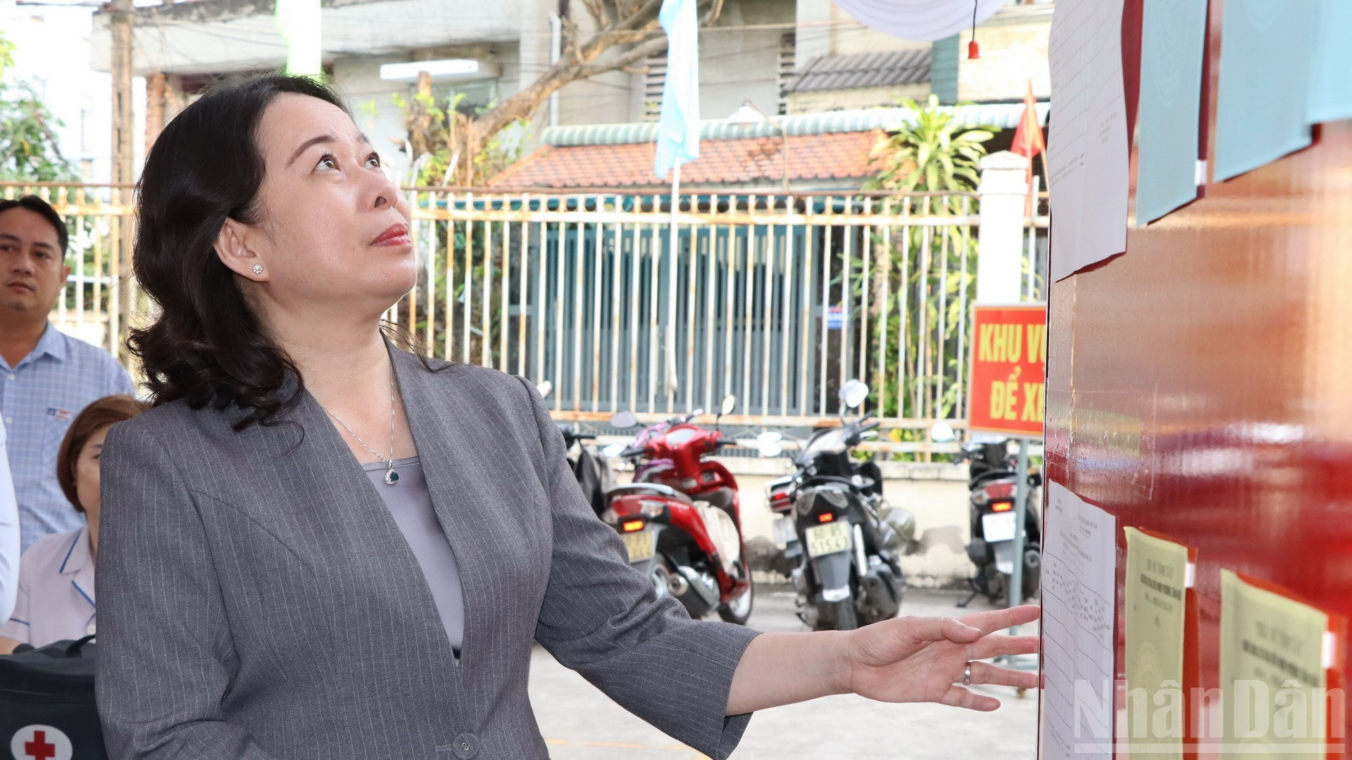 Phó Chủ tịch nước Võ Thị Ánh Xuân kiểm tra niêm yết danh sách cử tri.