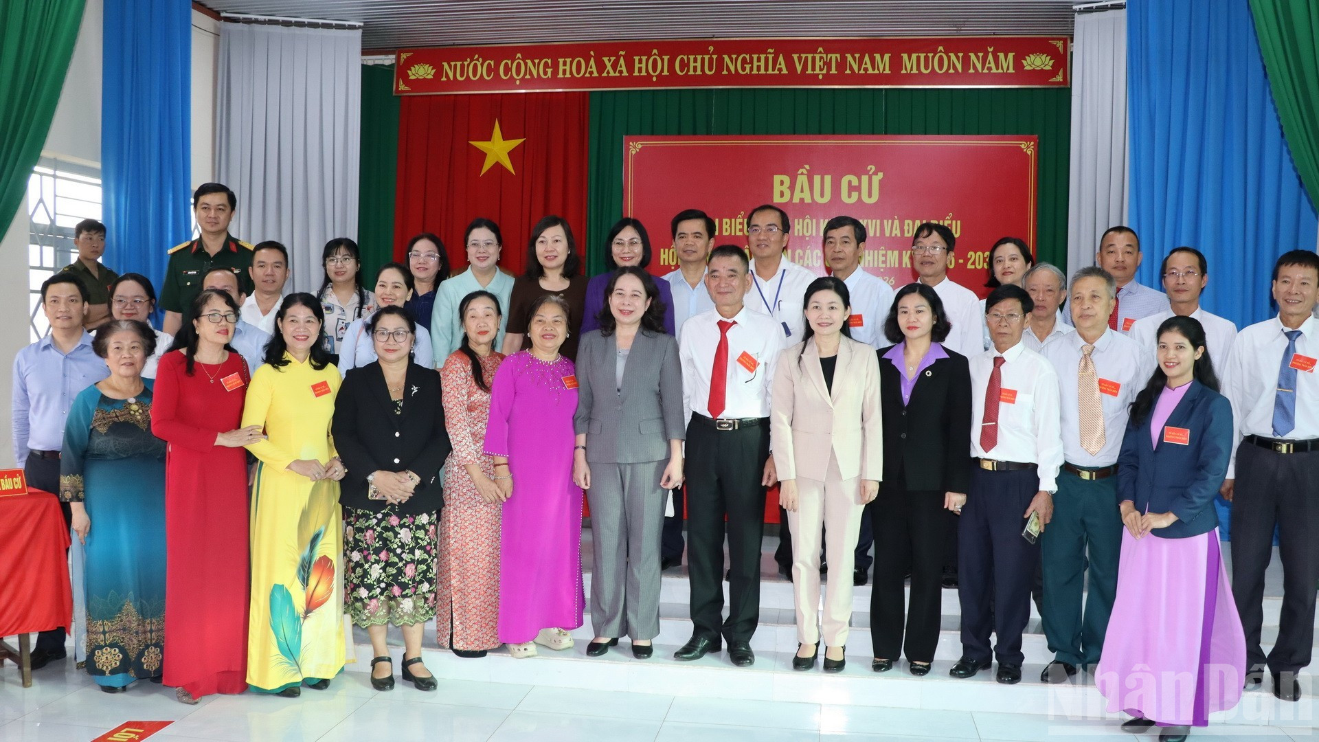 Phó Chủ tịch nước Võ Thị Ánh Xuân cùng các thành viên Đoàn công tác cùng lãnh đạo tỉnh Đồng Nai và Tổ bầu cử số 32 phường Trấn Biên.
