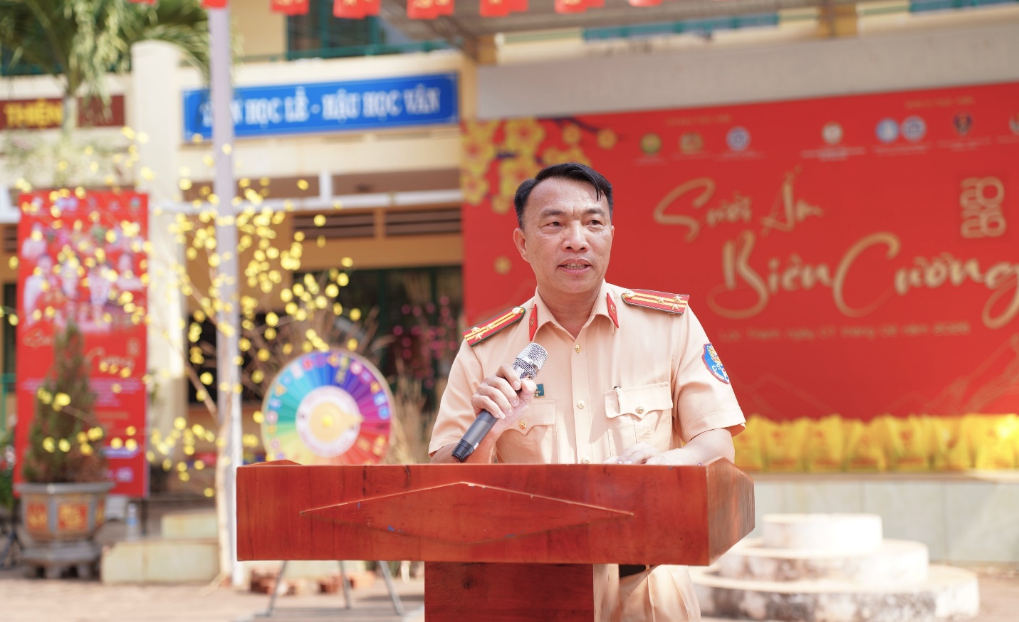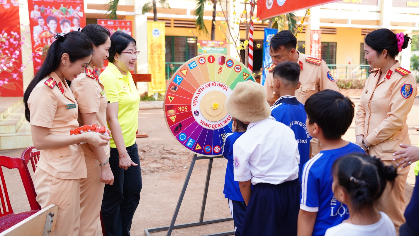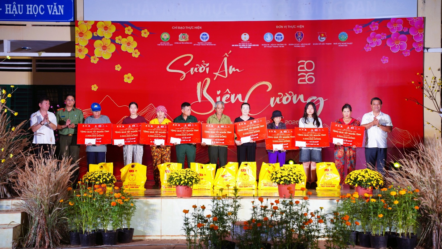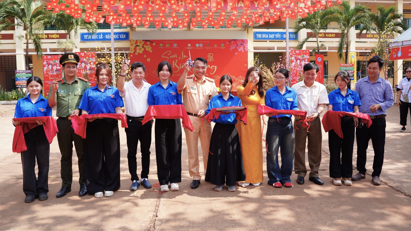 Song song đó, “Ngày hội Xuân” được tổ chức sôi nổi với mô hình “Chợ Tết 0 đồng”, các gian hàng nhu yếu phẩm, quần áo miễn phí, cắt tóc miễn phí và nhiều trò chơi dân gian gắn với tuyên truyền an toàn giao thông. Hàng chục phần quà đã được trao tận tay các gia đình chính sách, người có công với cách mạng, người cao tuổi neo đơn và các em học sinh có hoàn cảnh khó khăn, góp phần mang đến một mùa xuân ấm áp, trọn vẹn hơn.