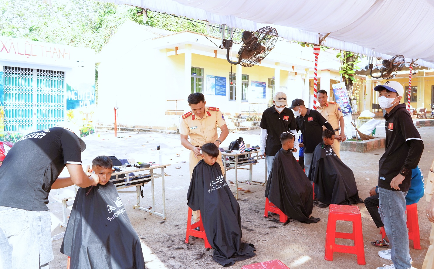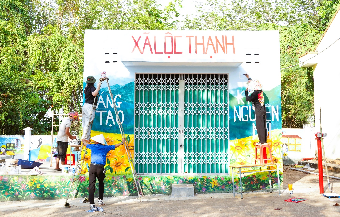 Một trong những điểm nhấn nổi bật là công trình “Tô điểm trường em” với hoạt động vẽ tranh, chỉnh trang khuôn viên tại Trường Tiểu học - Trung học cơ sở Lộc Hòa. Những mảng màu tươi sáng không chỉ làm đẹp không gian học đường mà còn gửi gắm thông điệp về ý thức bảo vệ an toàn cho thế hệ học sinh.