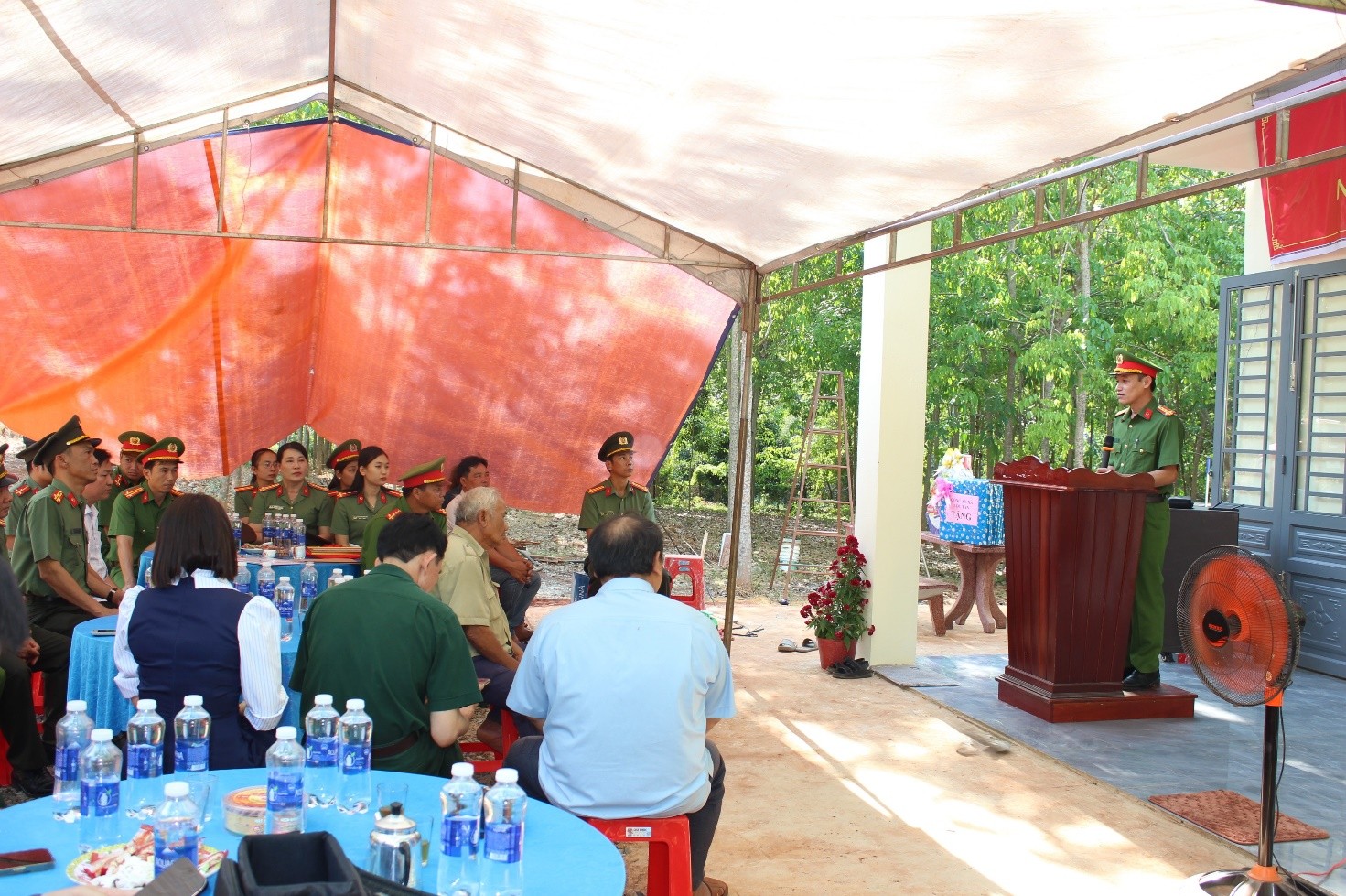 Phát biểu chúc mừng, đồng chí Phó Giám đốc Công an tỉnh mong muốn căn nhà sẽ là nguồn động viên tinh thần để đồng chí Quang tiếp tục nỗ lực phấn đấu, hoàn thành tốt mọi nhiệm vụ được giao, góp phần giữ vững an ninh trật tự tại địa phương. Trước thềm năm mới, thay mặt Đảng ủy, Ban Giám đốc Công an tỉnh Đồng Nai và Cụm thi đua số 6, đồng chí Phó Giám đốc đã gửi lời chúc mừng năm mới đến lãnh đạo chính quyền địa phương, tập thể CBCS Công an xã Lộc Tấn và gia đình đồng chí Quang đón năm mới mạnh khỏe, hạnh phúc, đón Tết vui tươi, an toàn và hoàn thành xuất sắc nhiệm vụ được giao.