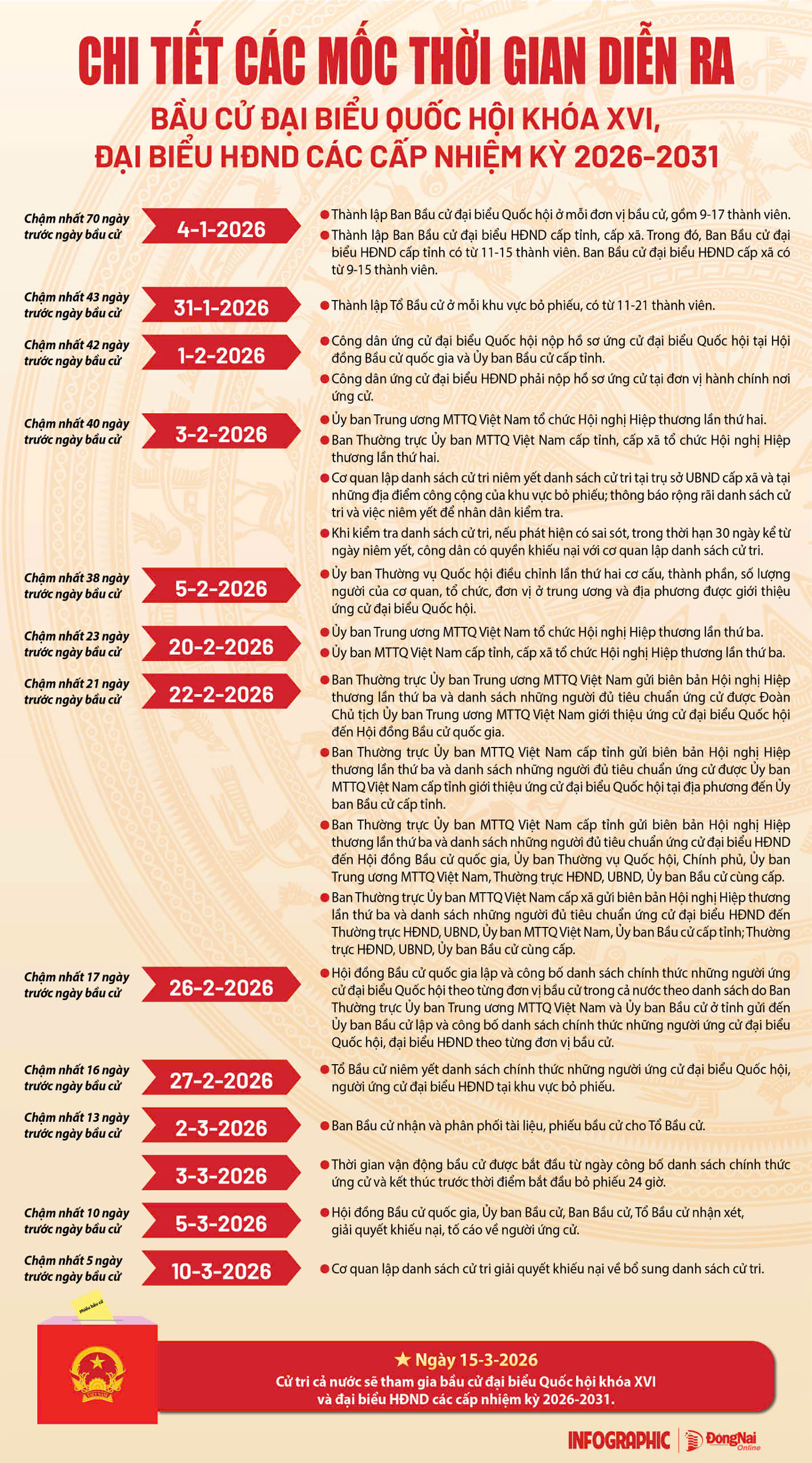 Chi tiết các mốc bầu cử đại biểu Quốc hội khóa XVI, đại biểu HĐND các cấp nhiệm kỳ 2026-2031