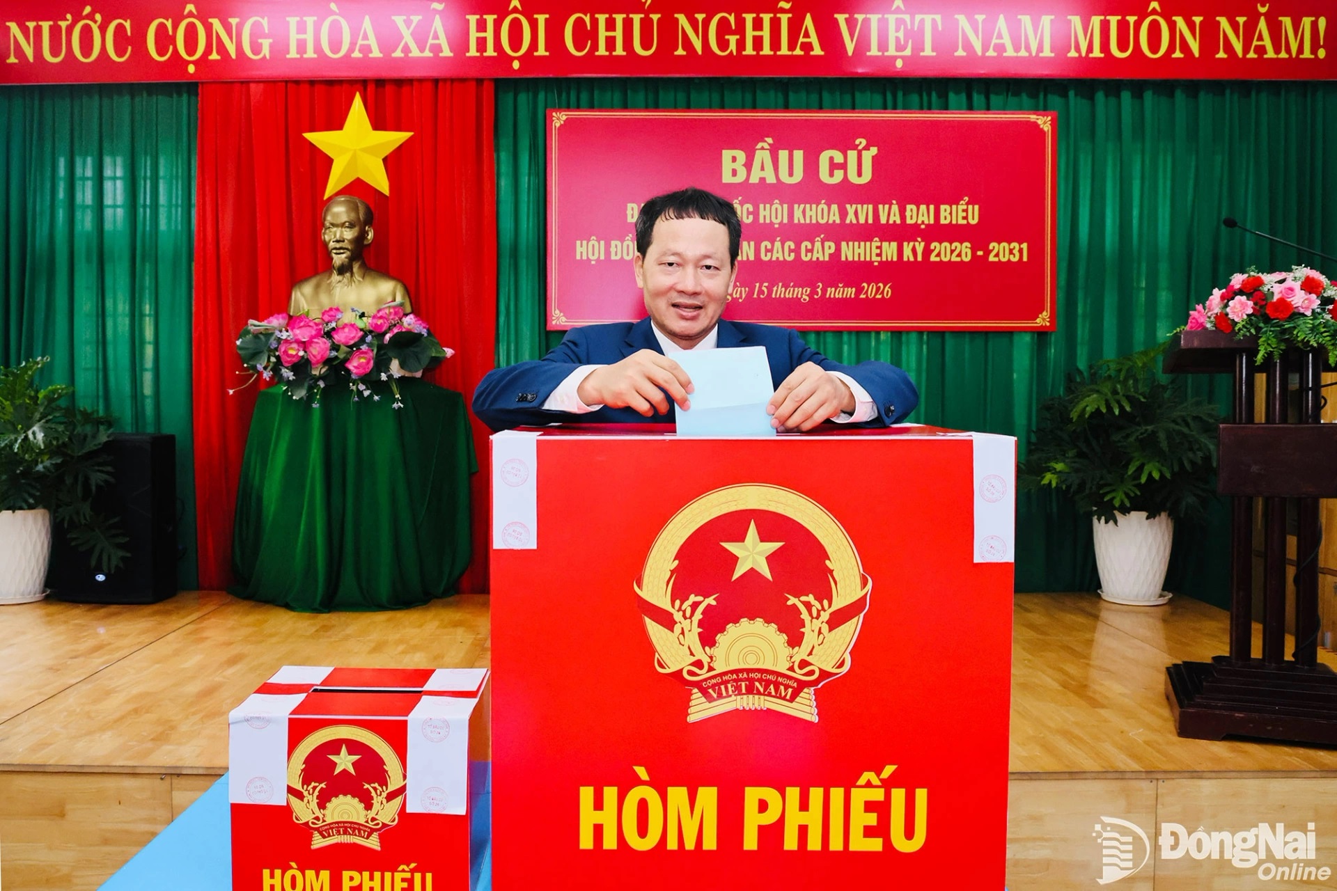 Đồng chí Vũ Hồng Văn, Ủy viên Trung ương Đảng, Bí thư Tỉnh ủy, Trưởng đoàn Đại biểu Quốc hội tỉnh, Chủ tịch Ủy ban Bầu cử tỉnh Đồng Nai nhận phiếu bầu cử. Ảnh: Công Nghĩa Đồng chí Vũ Hồng Văn, Ủy viên Trung ương Đảng, Bí thư Tỉnh ủy, Trưởng đoàn Đại biểu Quốc hội tỉnh, Chủ tịch Ủy ban Bầu cử tỉnh Đồng Nai nhận phiếu bầu cử. Ảnh: Công Nghĩa