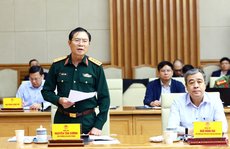 Đại tướng Nguyễn Tân Cương, Ủy viên Trung ương Đảng, Tổng Tham mưu trưởng Quân đội nhân dân Việt Nam, Thứ trưởng Bộ Quốc phòng phát biểu tại phiên họp.