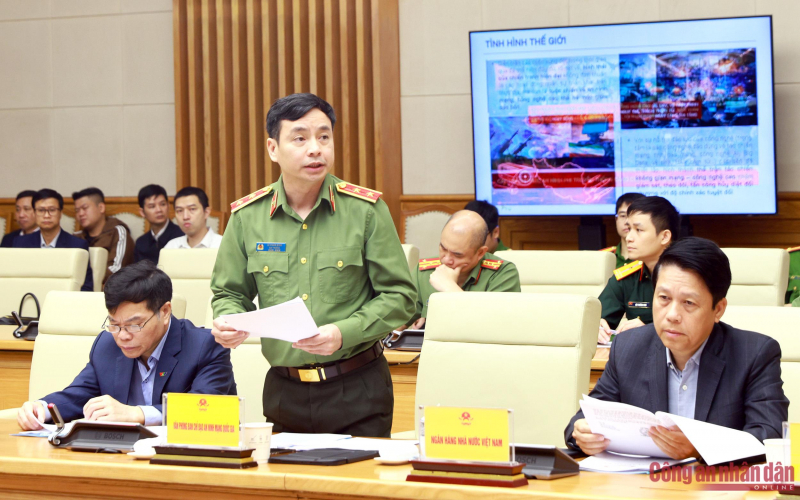 Trung tướng Lê Xuân Minh, Cục trưởng Cục An ninh mạng và phòng, chống tội phạm sử dụng công nghệ cao báo cáo tóm tắt tình hình, kết quả hoạt động của Ban Chỉ đạo.