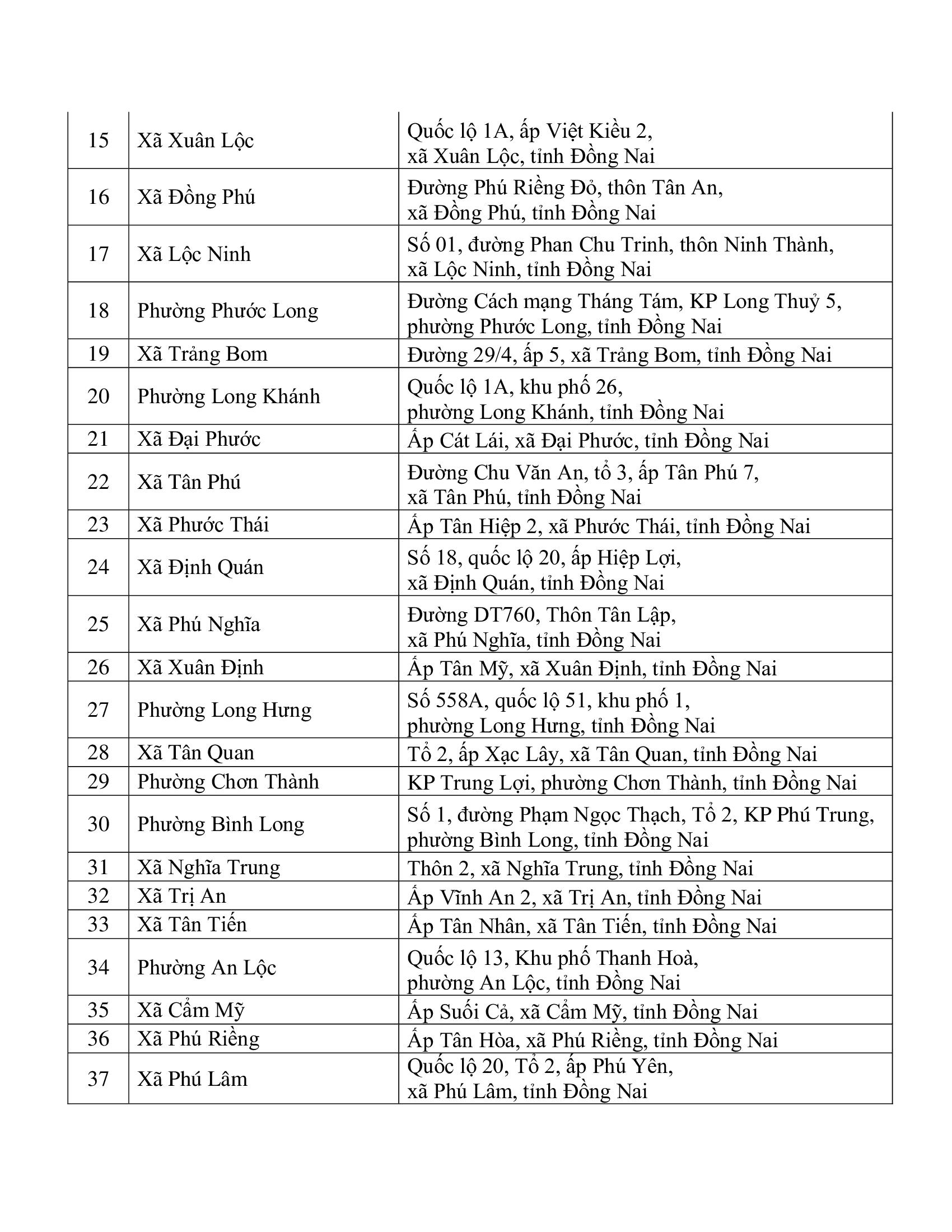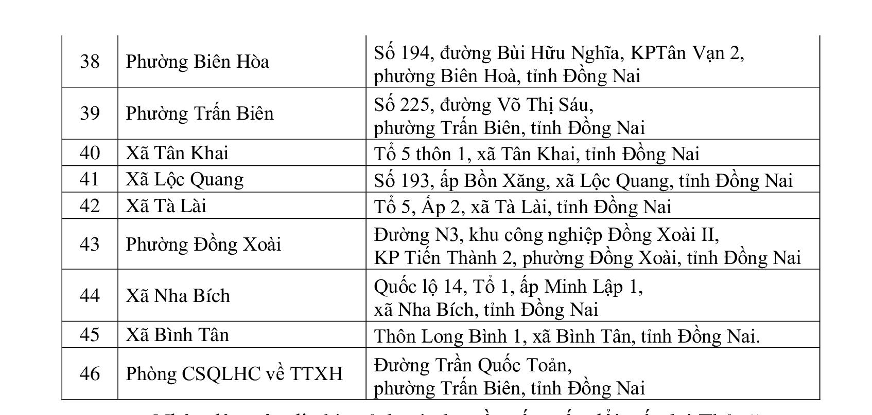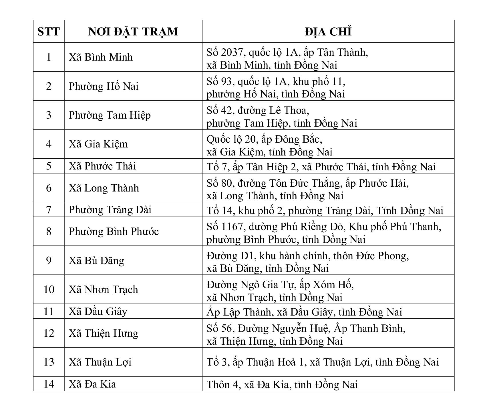 Do một số đơn vị thay đổi địa chỉ nơi đặt Trạm thu nhận hồ sơ cấp Thẻ căn cước, để Nhân dân trên địa bàn tỉnh thuận lợi trong việc lựa chọn nơi thu nhận hồ sơ cấp Thẻ Căn cước phù hợp, Phòng Cảnh sát quản lý hành chính về trật tự xã hội, Công an tỉnh Đồng Nai thông báo địa chỉ chi tiết 46 Trạm thu nhận hồ sơ cấp Thẻ Căn cước trên địa bàn tỉnh Đồng Nai, cụ thể như sau: