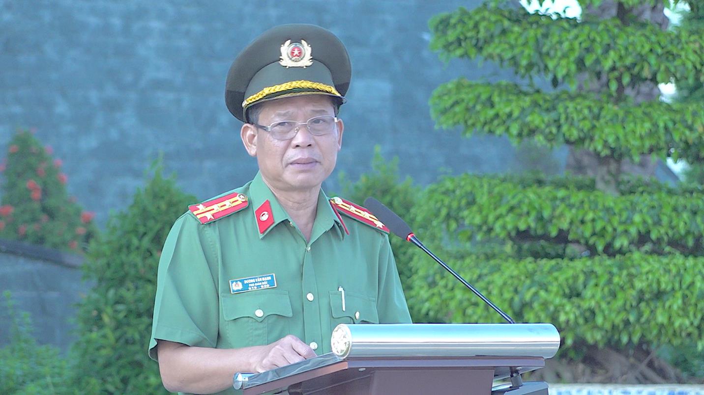 Đại tá Dương Văn Mạnh, Phó Giám đốc Công an tỉnh phát biểu tại buổi lễ