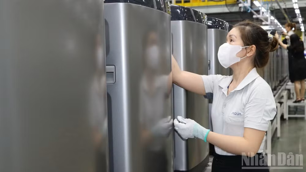 Dây chuyền sản xuất máy giặt tại Công ty trách nhiệm hữu hạn Điện máy AQUA Việt Nam.