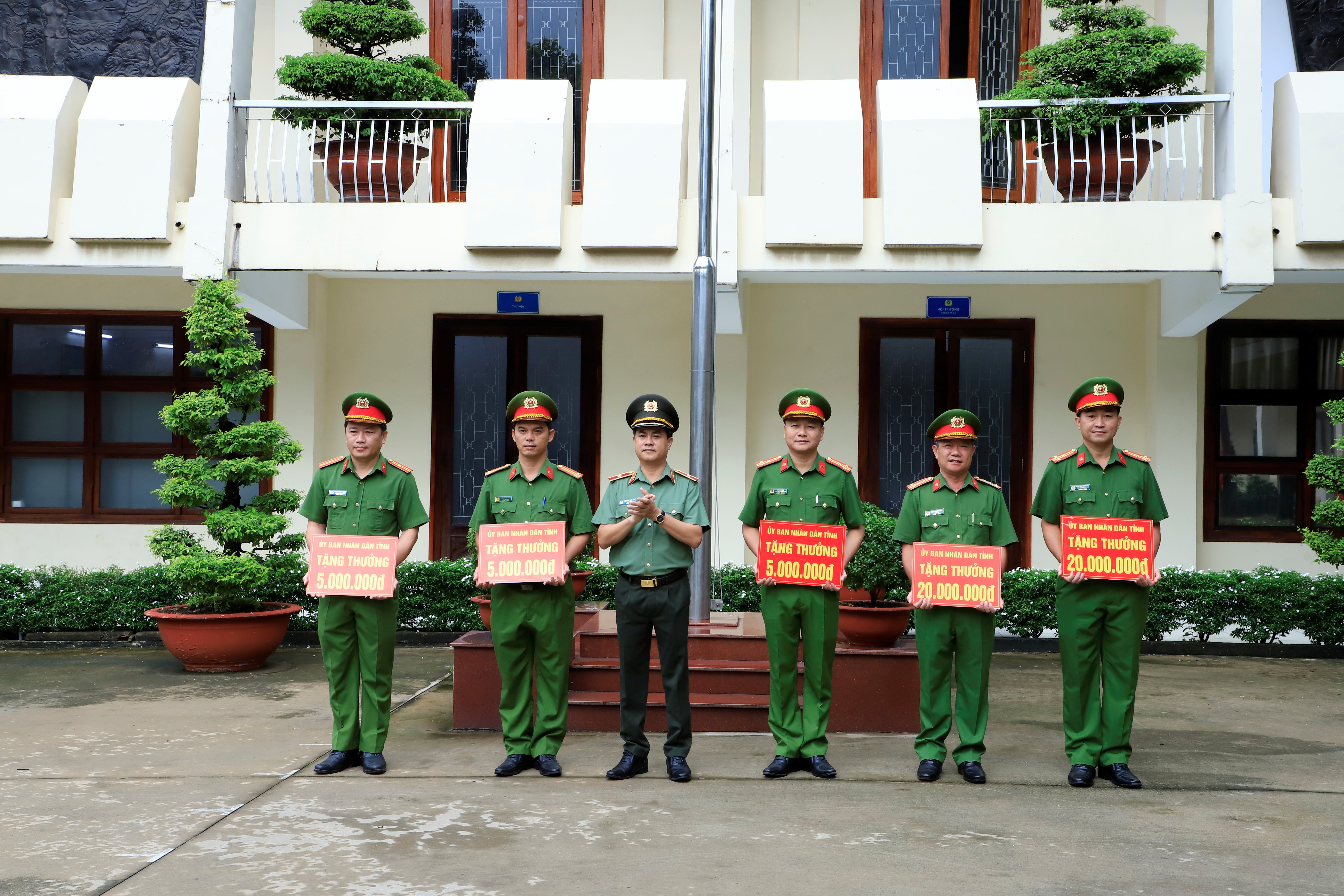 Thiếu tướng Nguyễn Đức Hải, Ủy viên Ban Thường vụ Tỉnh ủy, Bí thư Đảng ủy, Giám đốc Công an tỉnh trao thưởng đột xuất của UBND tỉnh cho các tập thể, cá nhân lập thành tích xuất sắc trong điều tra, phá án.