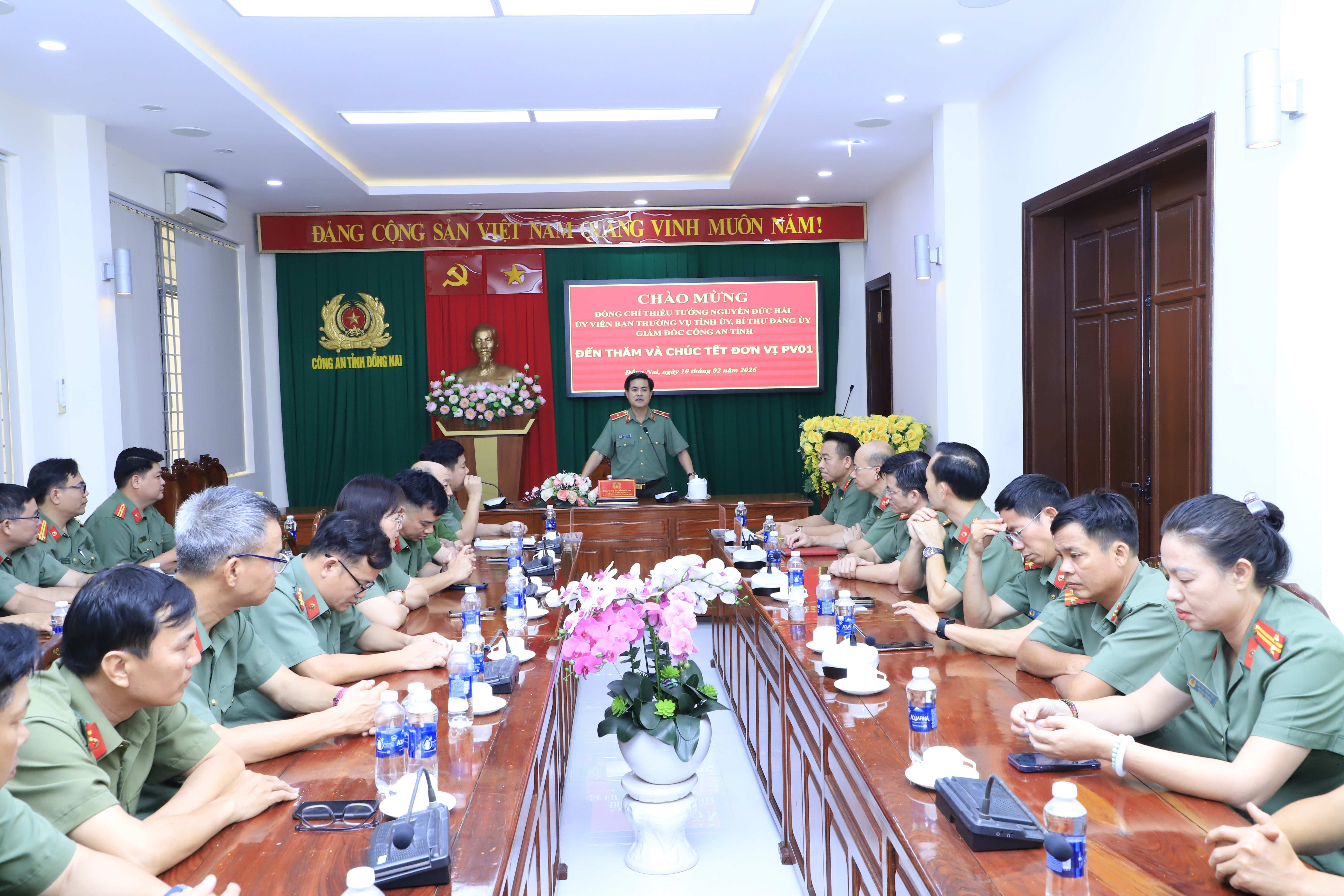 Thiếu tướng Nguyễn Đức Hải, Ủy viên Ban Thường vụ Tỉnh ủy, Bí thư Đảng ủy, Giám đốc Công an tỉnh đến thăm, chúc Tết Nguyên đán Bính Ngọ năm 2026 Phòng Tham mưu