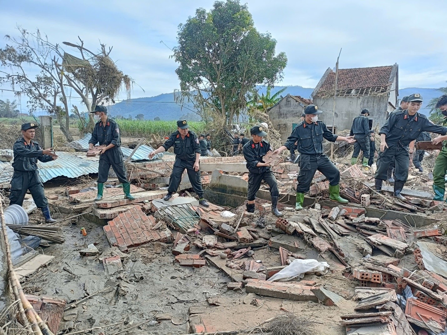 CBCS Công an tỉnh giúp nhân dân các tỉnh Nam Trung bộ khắc phục hậu quả thiên tai