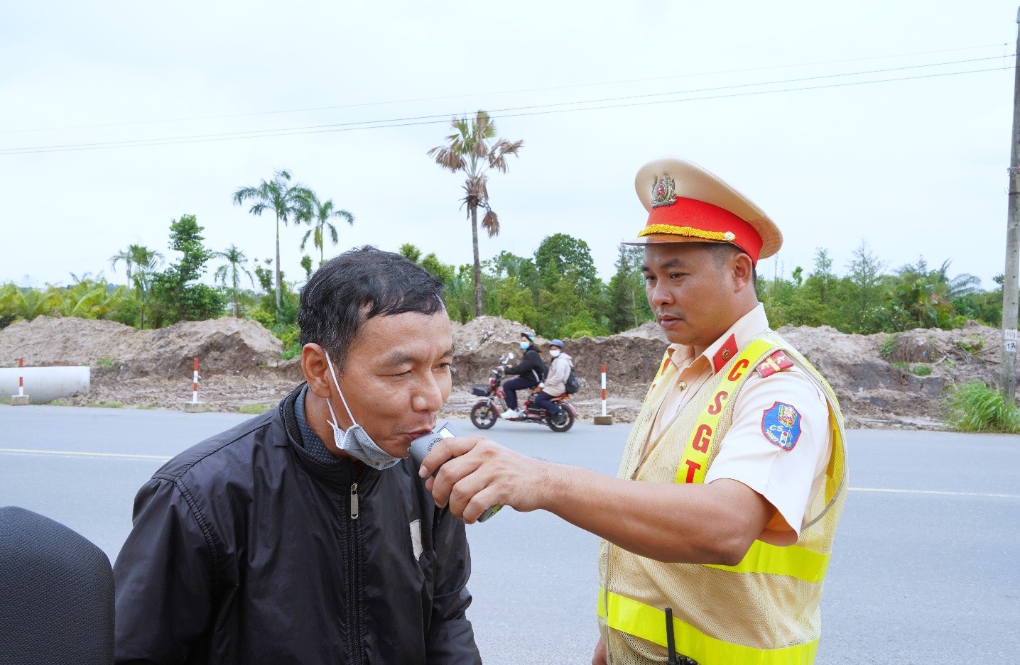 Lực lượng CSGT Ngã ba Thái Lan kiểm tra nồng độ cồn trên tuyến QL51 (ảnh trên) và tuyến đường Lê Duẫn (ảnh dưới)