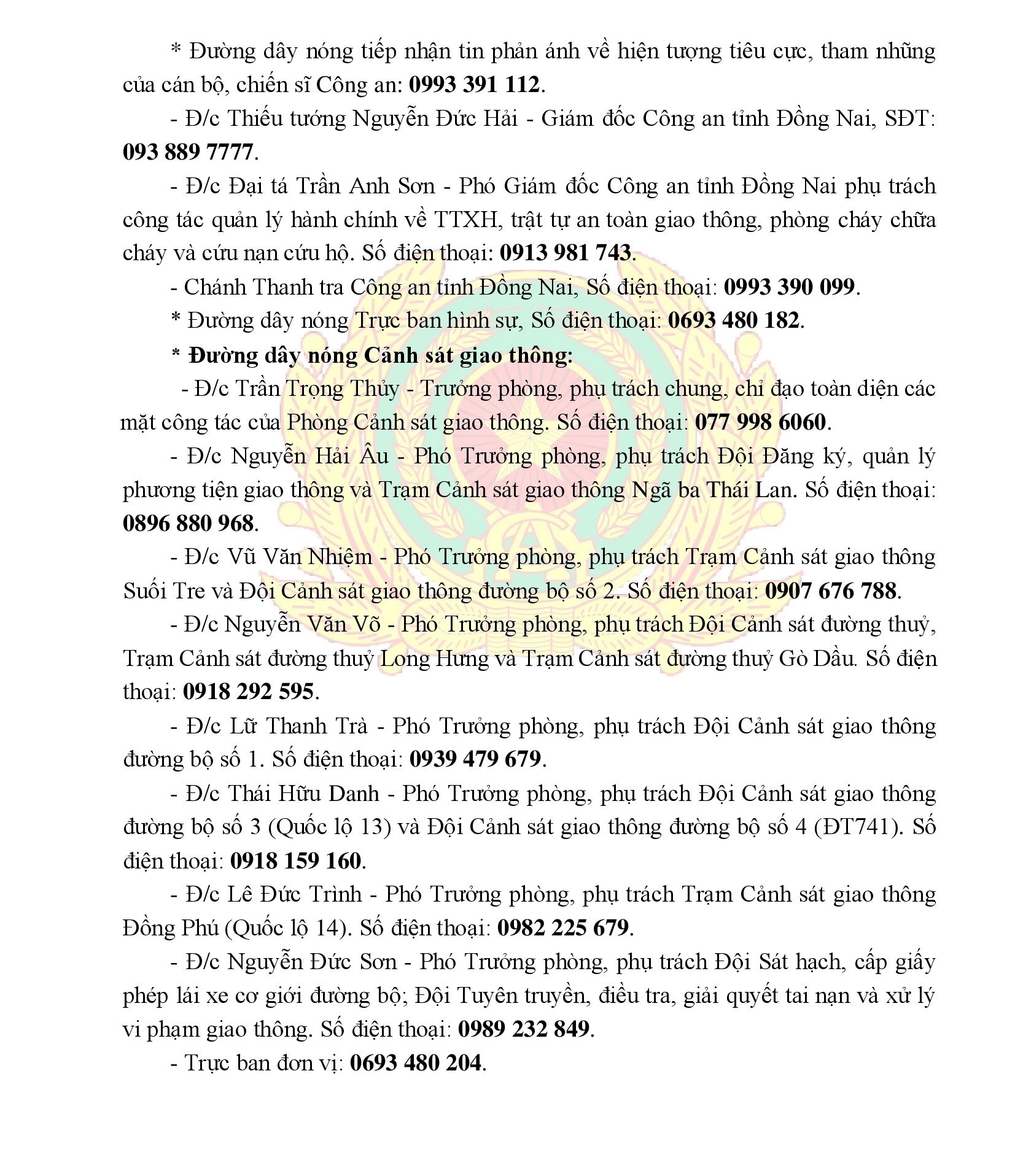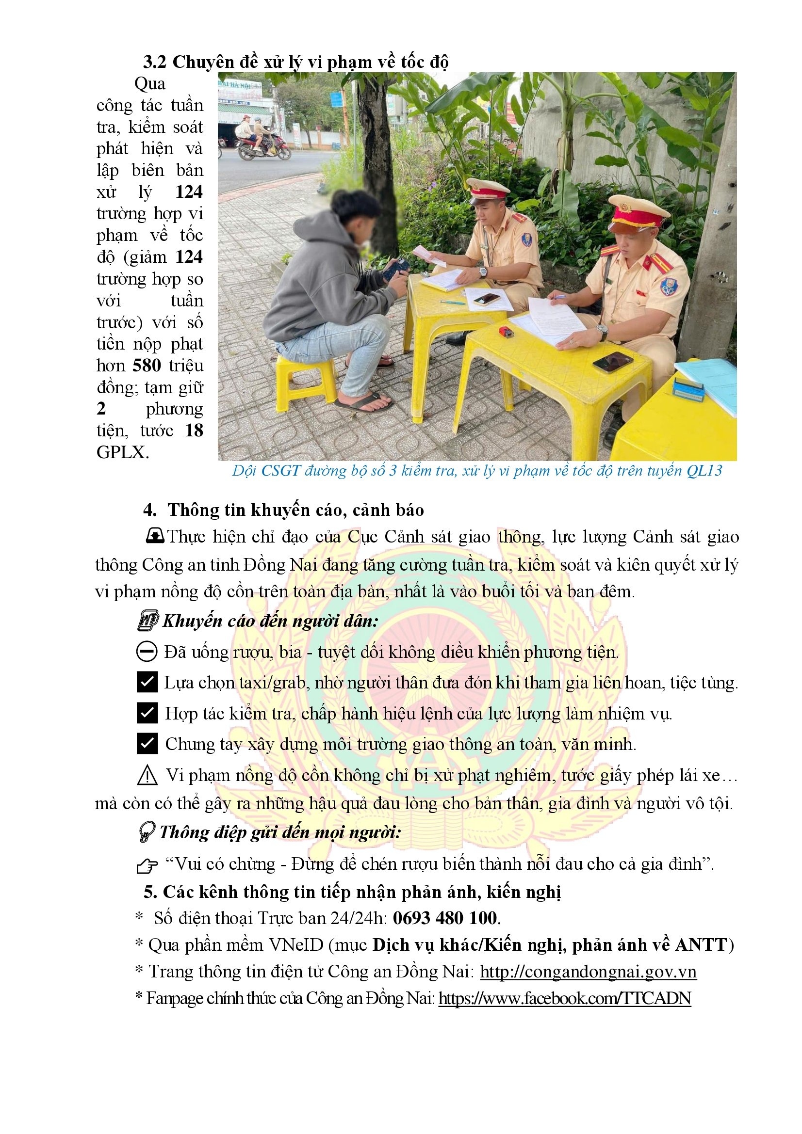 Công an tỉnh Đồng Nai trân trọng thông tin tới quý cơ quan, doanh nghiệp và nhân dân tình hình Trật tự an toàn giao thông trên địa bàn tỉnh (tuần, từ 23 đến 29/10/2025).