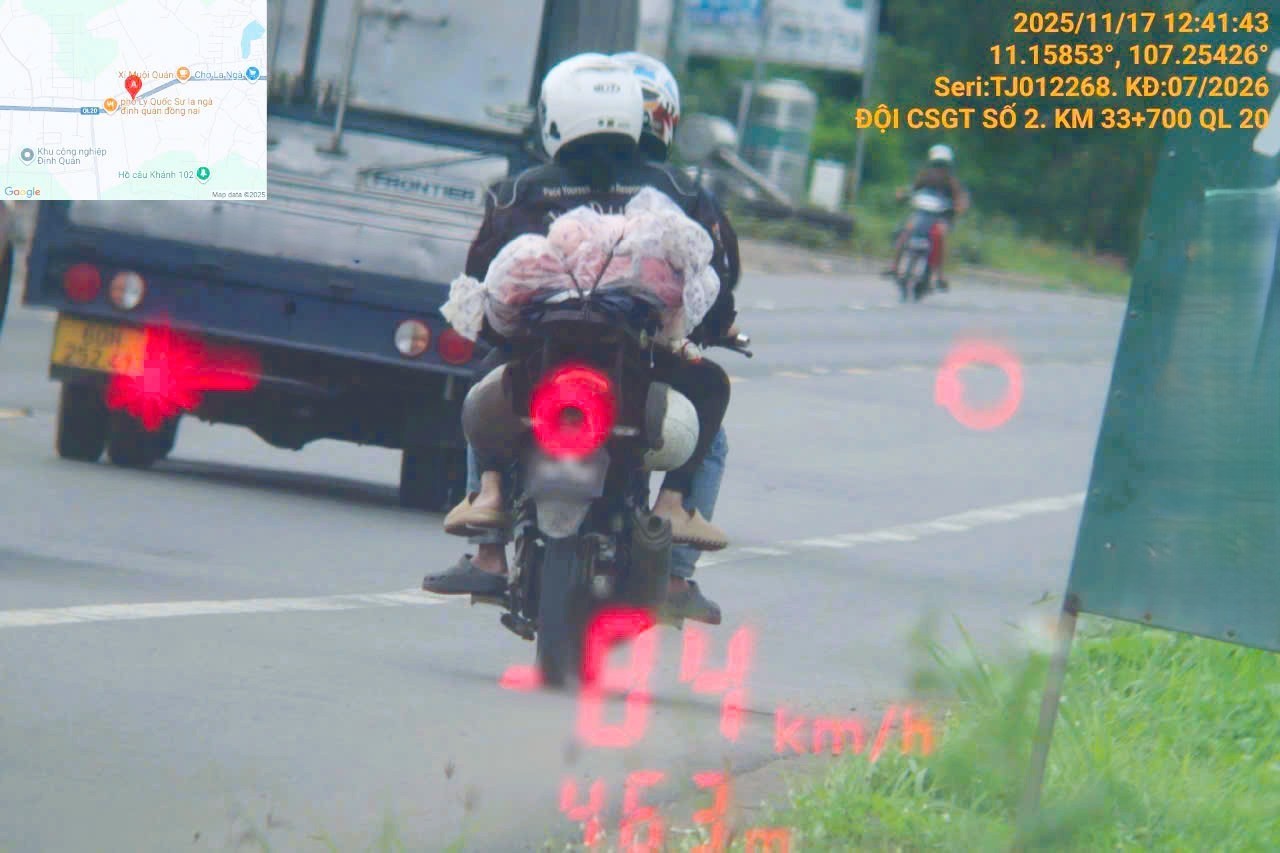 Xe mô tô không biển số do N.D.T. điều khiển vi phạm tốc độ trên tuyến QL20