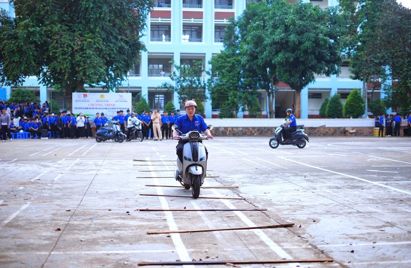 Tại buổi tập huấn, cán bộ Phòng CSGT đã phổ biến các quy định cơ bản của Luật Trật tự, an toàn giao thông đường bộ; hướng dẫn những quy tắc khi tham gia giao thông và các biện pháp xử lý tình huống nguy hiểm. Học sinh còn được trực tiếp thực hành điều khiển xe gắn máy trên sa hình nhằm nâng cao phản xạ và kỹ năng xử lý khi lái xe.
