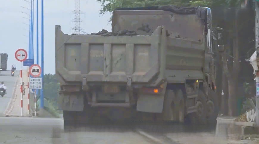 Một trong những xe tải chở bùn đất không che phủ (ảnh cắt từ clip)