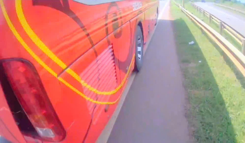 Xe khách chèn ép xe máy trên tuyến QL1A (ảnh cắt từ clip)
