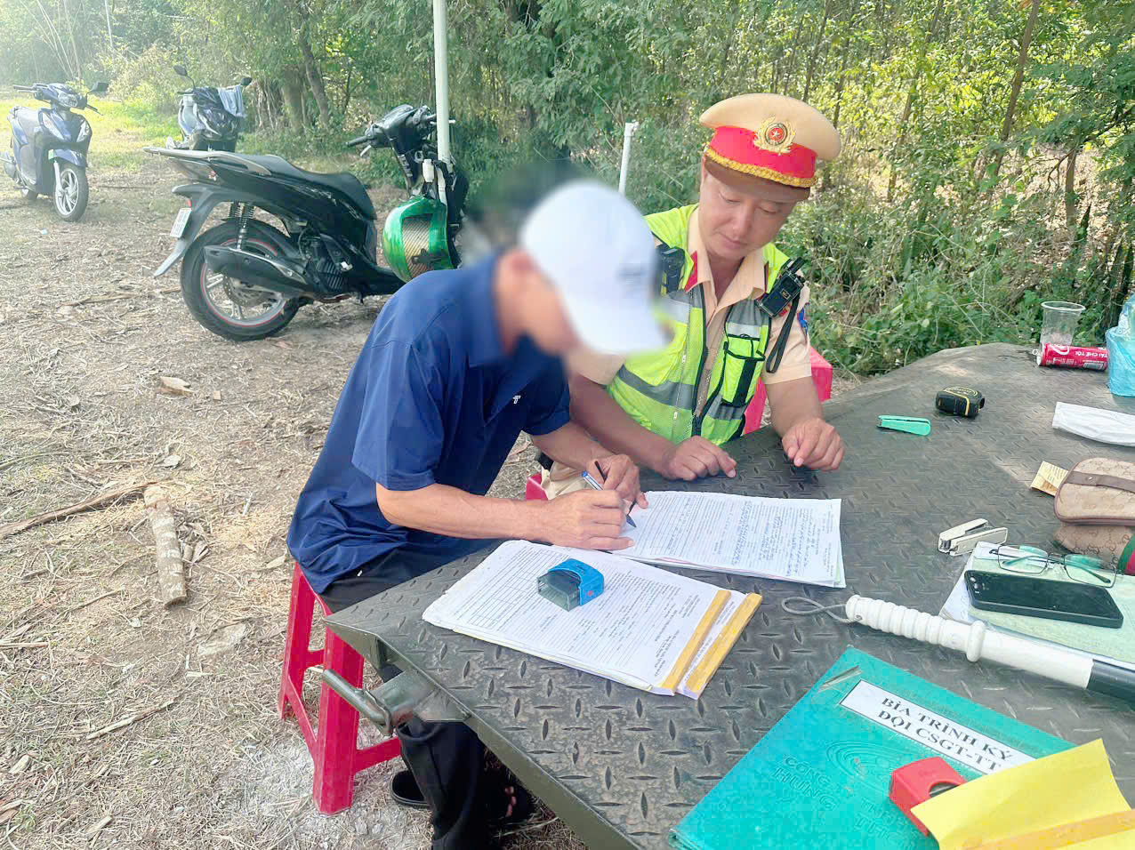 Lập biên bản xử phạt vi phạm hành chính đối với tài xế N.P.T.