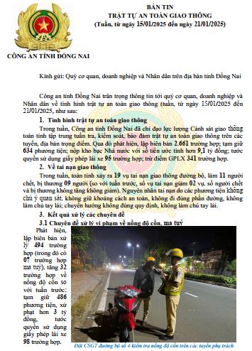 BẢN TIN TRẬT TỰ AN TOÀN GIAO THÔNG (Tuần, từ ngày 15/01/2025 đến ngày 21/01/2025)