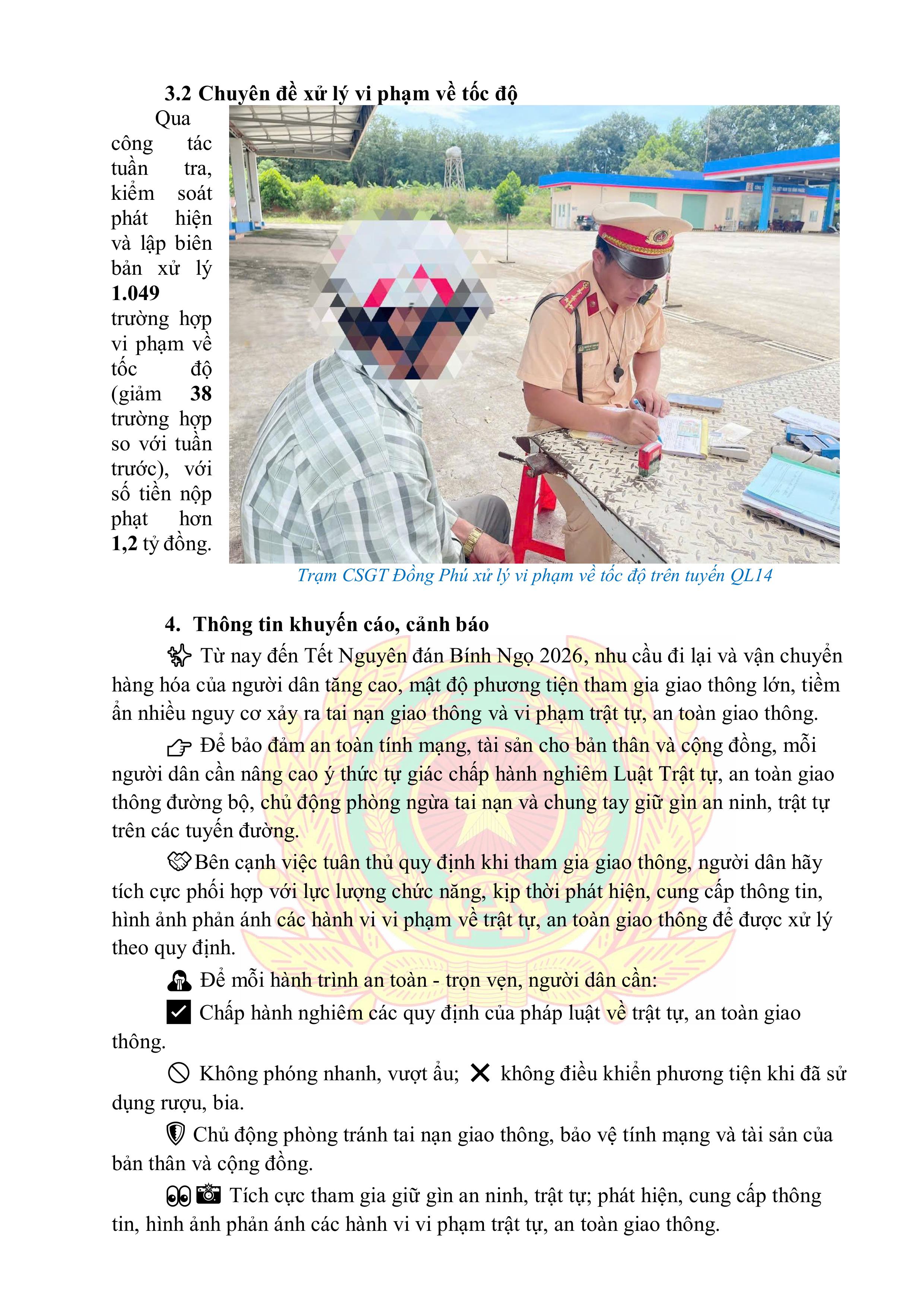 Công an tỉnh Đồng Nai trân trọng thông tin tới quý cơ quan, doanh nghiệp và Nhân dân về tình hình trật tự an toàn giao thông (tuần, từ ngày 22/01/2026 đến 28/01/2026, như sau: