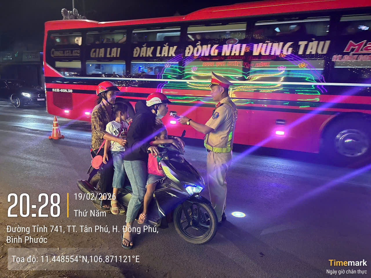 Trạm CSGT Đồng Phú phối hợp với Công an cấp xã tuần tra, kiểm soát,
