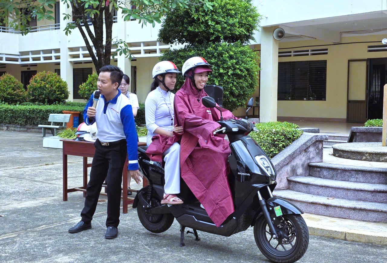 Đồng thời, học sinh được phổ biến các kiến thức, kỹ năng cơ bản khi điều khiển phương tiện, như: đội mũ bảo hiểm đúng quy định khi sử dụng xe đạp điện, xe máy điện, mô tô, xe gắn máy; chấp hành hiệu lệnh của đèn tín hiệu giao thông; đi đúng phần đường, làn đường; chú ý quan sát khi chuyển hướng; điều khiển phương tiện phù hợp với độ tuổi theo quy định.