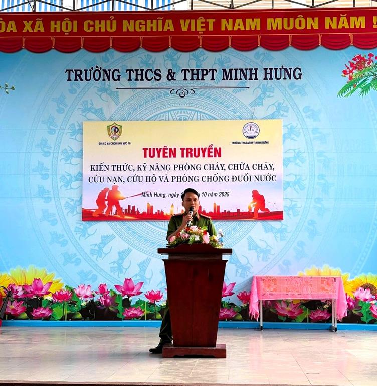 Tại buổi tuyên truyền, cán bộ, Đội Cảnh sát PCCC & CNCH Khu vực 10 đã phổ biến các kiến thức cơ bản về pháp luật, kỹ năng và biện pháp bảo đảm an toàn PCCC và CNCH. Trong đó, tập trung hướng dẫn nhận biết các nguy cơ cháy, nổ, nguyên nhân thường gặp, kỹ năng xử lý tình huống khi xảy ra cháy, nổ, phương pháp thoát nạn an toàn tại trường học, gia đình, chung cư, nơi đông người, cũng như kỹ năng phòng chống tai nạn đuối nước.