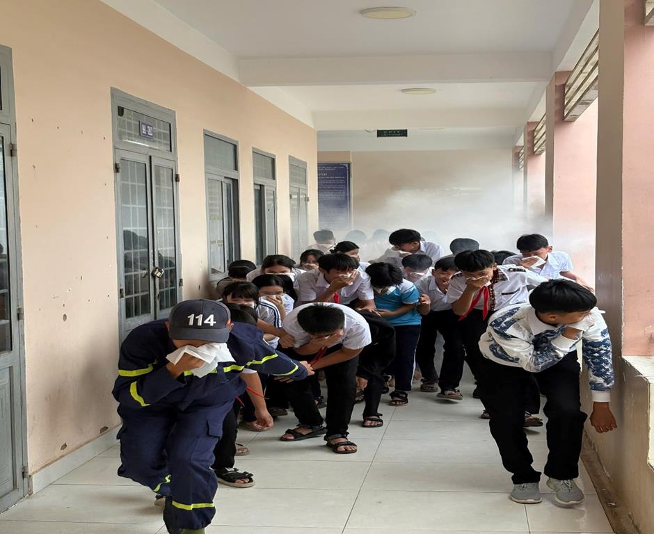Học sinh trải nghiệm thoát nạn trong môi trường khói, khí độc