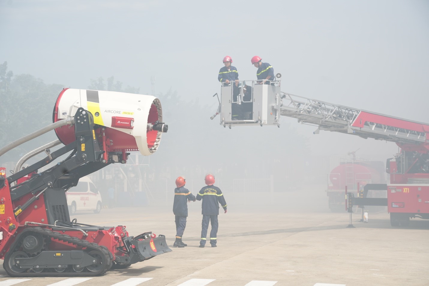 Lực lượng chữa cháy và cứu nạn cứu hộ chuyên nghiệp cùng các trang bị, phương tiện chuyên dụng tham gia diễn tập