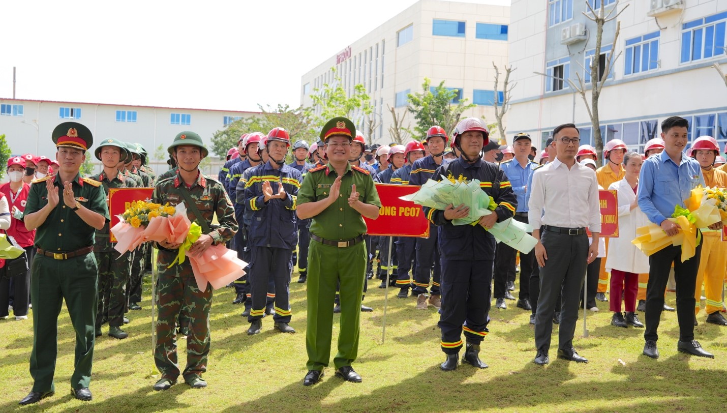 Phát biểu khai mạc buổi diễn tập, Đại tá Trần Anh Sơn, Phó Giám đốc Công an tỉnh, Phó trưởng Ban Chỉ đạo nhấn mạnh, trong bối cảnh vẫn còn xảy ra nhiều vụ cháy tại các nhà máy, xí nghiệp, gây thiệt hại lớn về người và tài sản, việc tổ chức diễn tập phương án chữa cháy, cứu nạn cứu hộ phối hợp nhiều lực lượng có quy mô lớn nhằm mục đích nâng cao khả năng phản ứng, kỹ năng xử lý thoát nạn và công tác phối hợp giữa nhiều lực lượng. Đồng thời, tăng cường khả năng thường trực, sẵn sàng ứng phó, xử lý các tình huống cháy và cứu nạn cứu hộ của lực lượng tại chỗ, phát động mạnh mẽ phong trào Toàn dân tham gia PCCC & CNCH trên địa bàn tỉnh với phương châm 4 tại chỗ “Chỉ huy tại chỗ, lực lượng tại chỗ, phương tiện tại chỗ và vật tư, hậu cần tại chỗ”.