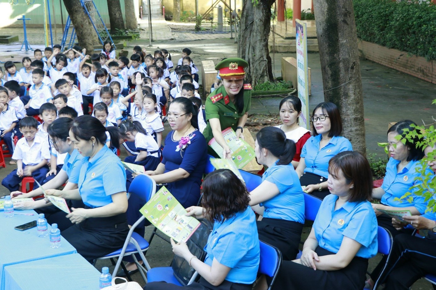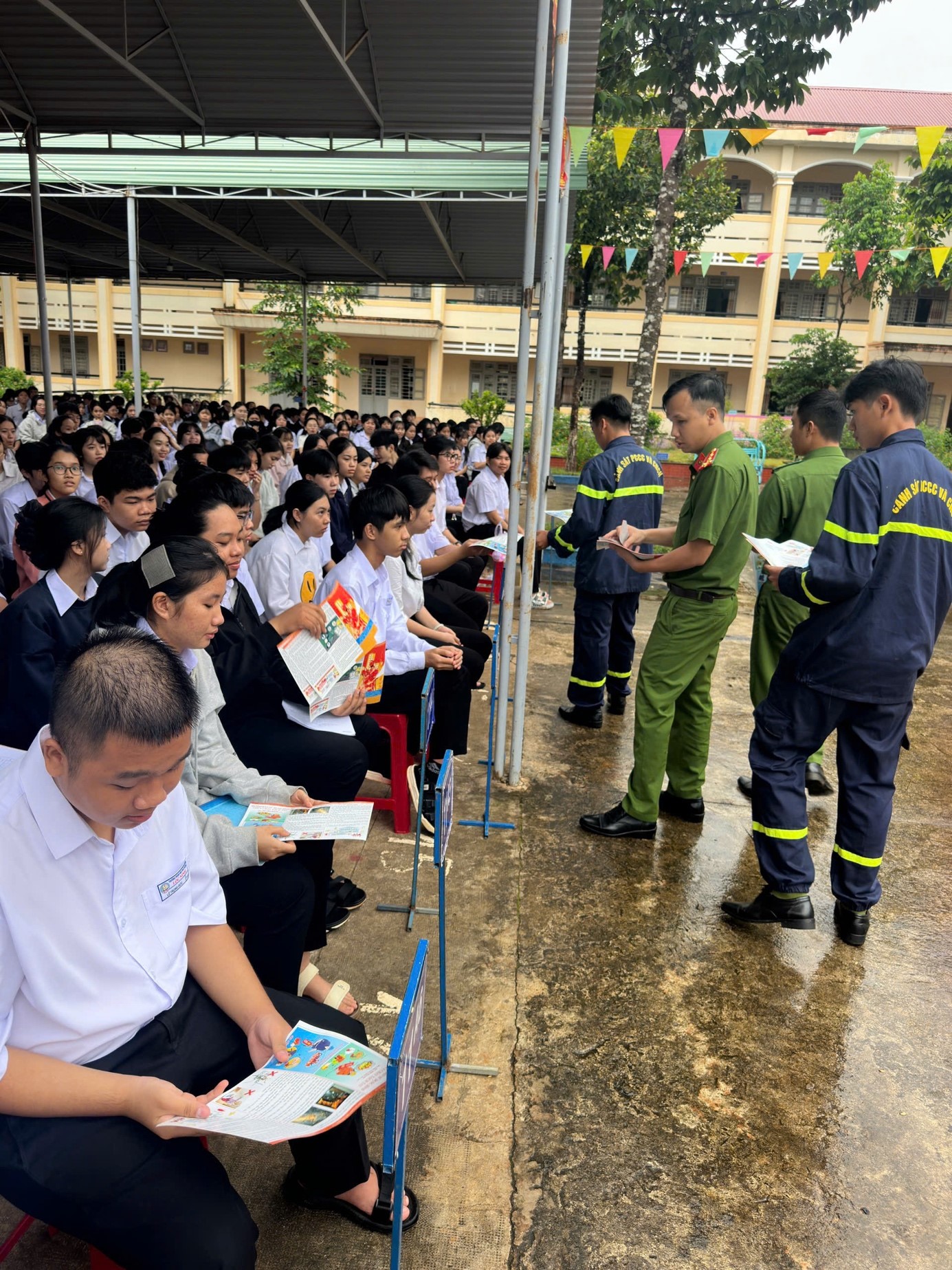CBCS Phòng Cảnh sát Phòng cháy chữa cháy và cứu nạn cứu hộ phát tờ rơi tuyên truyền tại trường tiểu học Tân Thành, Đồng Nai.