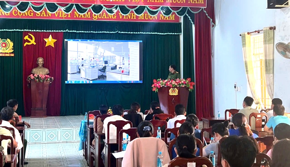 Ngày 14/12/2025, tại xã Bình Tân, tỉnh Đồng Nai, Phòng Cảnh sát phòng cháy chữa cháy và cứu bạn cứu hộ (PCCC và CNCH) Công an tỉnh Đồng Nai đã phối hợp với Công an xã Bình Tân, các đơn vị chức năng tổ chức lớp huấn luyện nghiệp vụ phòng cháy, chữa cháy và cứu nạn, cứu hộ cho Trưởng thôn, Tổ trưởng tổ dân phố, thành viên Đội dân phòng và người đứng đầu các cơ sở trên địa bàn xã.  Báo cáo viên triển khai phần lý thuyết Báo cáo viên triển khai phần lý thuyết