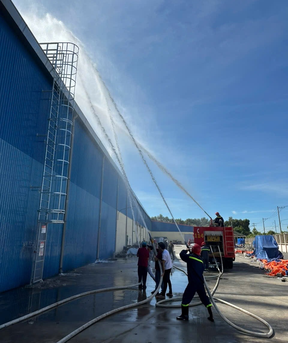 Nhận được tin báo cháy, Đội chữa cháy và cứu nạn cứu hộ khu vực 9 lập tức điều động 02 xe chữa cháy, cùng 12 cán bộ chiến sĩ nhanh chóng đến hiện trường triển khai đội hình, phối hợp cùng lực lượng chữa cháy của Công ty tiến hành chữa cháy và cứu nạn cứu hộ. Đồng thời, triển khai đội hình 02 lăng B phun nước khống chế đám cháy và làm mát các khu vực lân cận chống cháy lan, cứu người bị nạn còn kẹt bên trong thoát ra ngoài và di dời tài sản đến nơi an toàn. Buổi thực tập đã diễn ra đúng theo kế hoạch đề ra, bảo đảm an toàn về người và phương tiện.