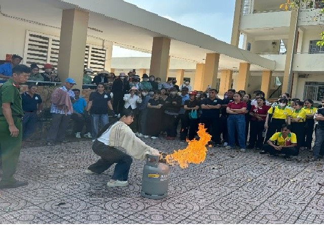 Bên cạnh đó, Ban tổ chức đã hướng dẫn phương pháp, biện pháp chữa cháy, cách thao tác, sử dụng các phương tiện PCCC tại chỗ phổ biến và cho học viên tham gia trải nghiệm thực tế, tự tin sử dụng phương tiện chữa cháy đối với đám cháy xăng, dầu và khí gas để có kỹ năng chữa cháy trong cuộc sống hàng ngày, tại nơi làm việc cũng như tại gia đình nếu có sự cố cháy, nổ xảy ra.