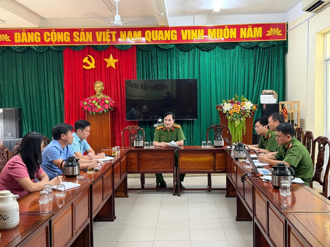 Đoàn công tác của Phòng Cảnh sát PCCC và CNCH làm việc tại UBND phường Tân Triều