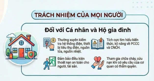 Khi xảy ra cháy tìm mọi cách báo cháy nhanh nhất cho lực lượng Cảnh sát PCCC và CNCH theo số máy 114, Công an xã và báo cho chính quyền, đồng thời tham gia chữa cháy, cứu người, cứu tài sản. PCCC không chỉ là trách nhiệm của lực lượng chức năng mà còn là sự an toàn của mỗi gia đình. Sự chủ động từ phía người dân chính là “lá chắn” quan trọng nhất để hạn chế tối đa nguy cơ cháy nổ trong cao điểm mùa khô, trước trong và sau Tết Nguyên đán.