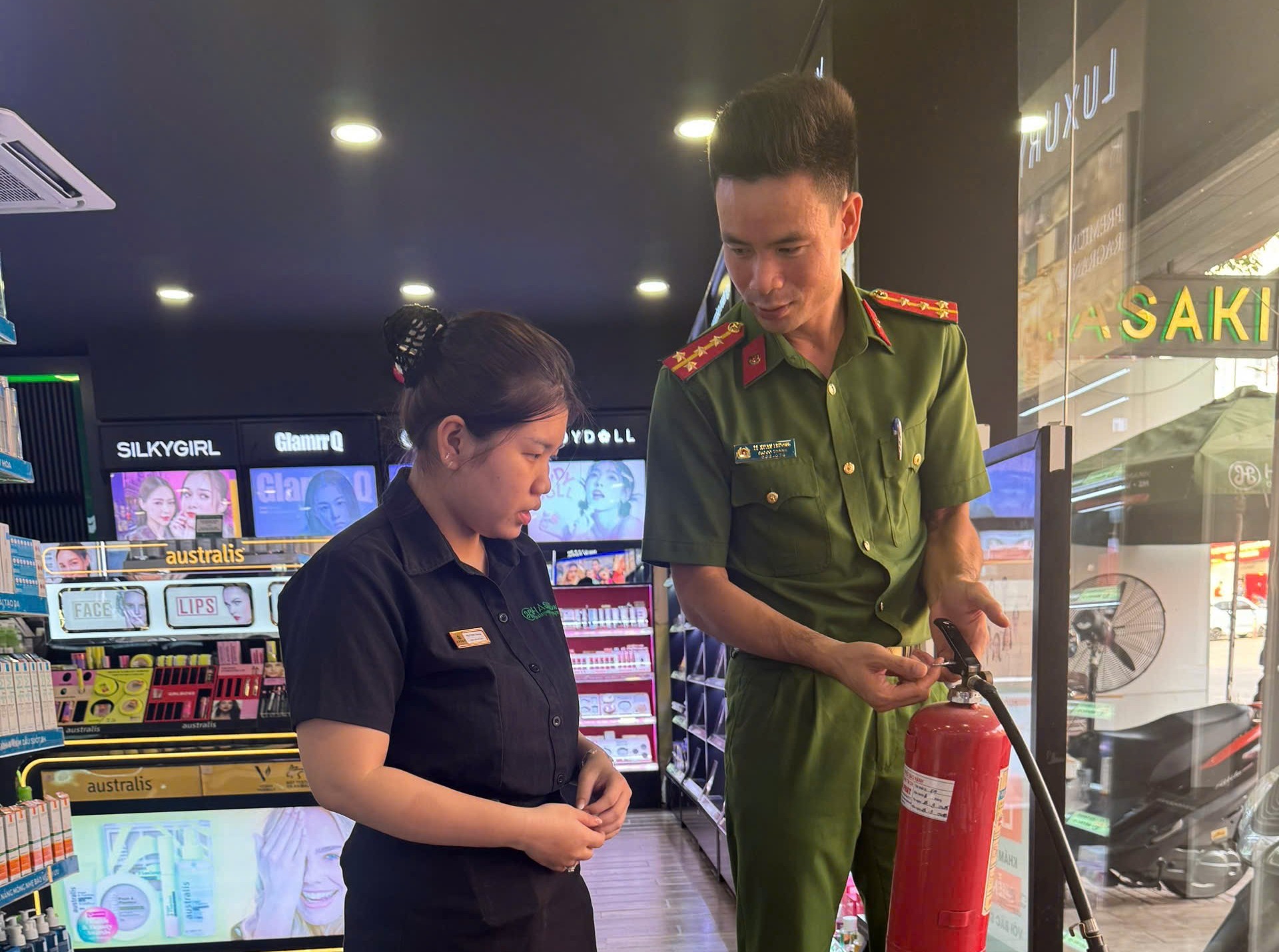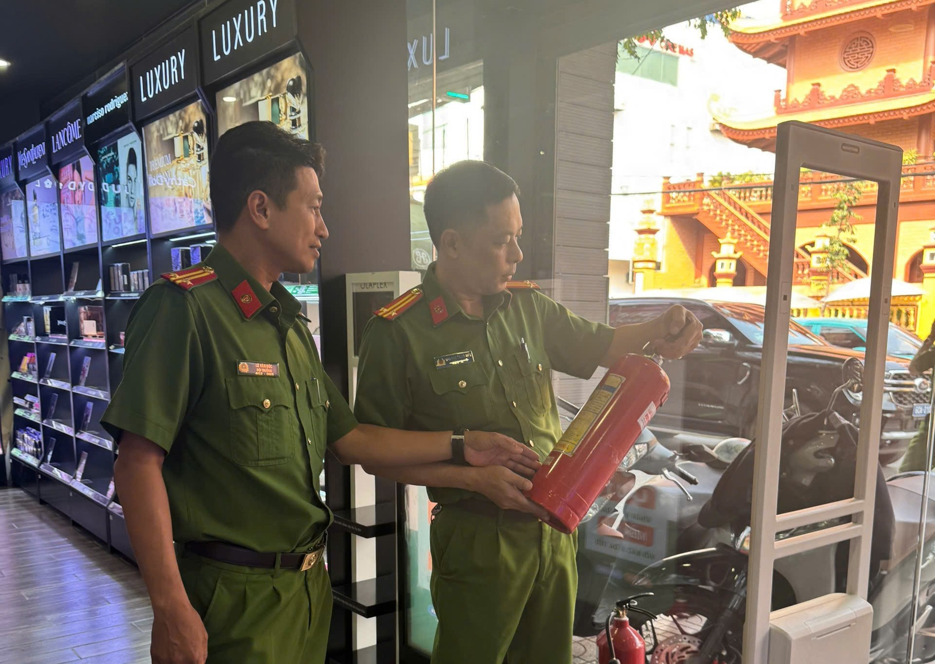 Đoàn kiểm tra tiến hành kiểm tra thực tế, hướng dẫn việc thực hiện các quy định về phòng cháy, chữa cháy và cách sử dụng, bảo trì, bảo dưỡng các hệ thống phương tiện PCCC đã được trang bị tại cơ sở