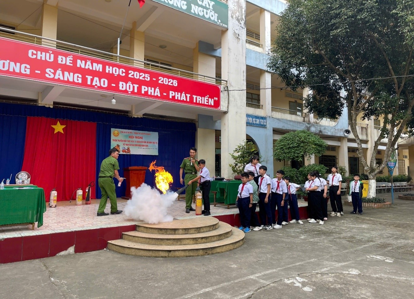Đây là một chương trình có ý nghĩa giúp nâng cao nhận thức và kỹ năng cho cán bộ, giáo viên, nhân viên và học sinh về phòng ngừa và ứng phó với các tình huống cháy nổ, góp phần thực hiện thắng lợi nhiệm vụ năm học 2026 – 2027 của nhà trường./.