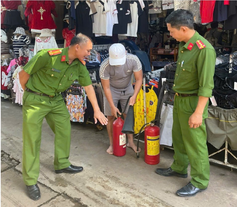 Bên cạnh công tác kiểm tra, lực lượng chức năng còn đẩy mạnh tuyên truyền, hướng dẫn tiểu thương thực hiện nghiêm các quy định về bảo đảm an toàn PCCC, cách nhận biết nguy cơ cháy nổ và kỹ năng sử dụng bình chữa cháy xách tay được trang bị tại chợ.