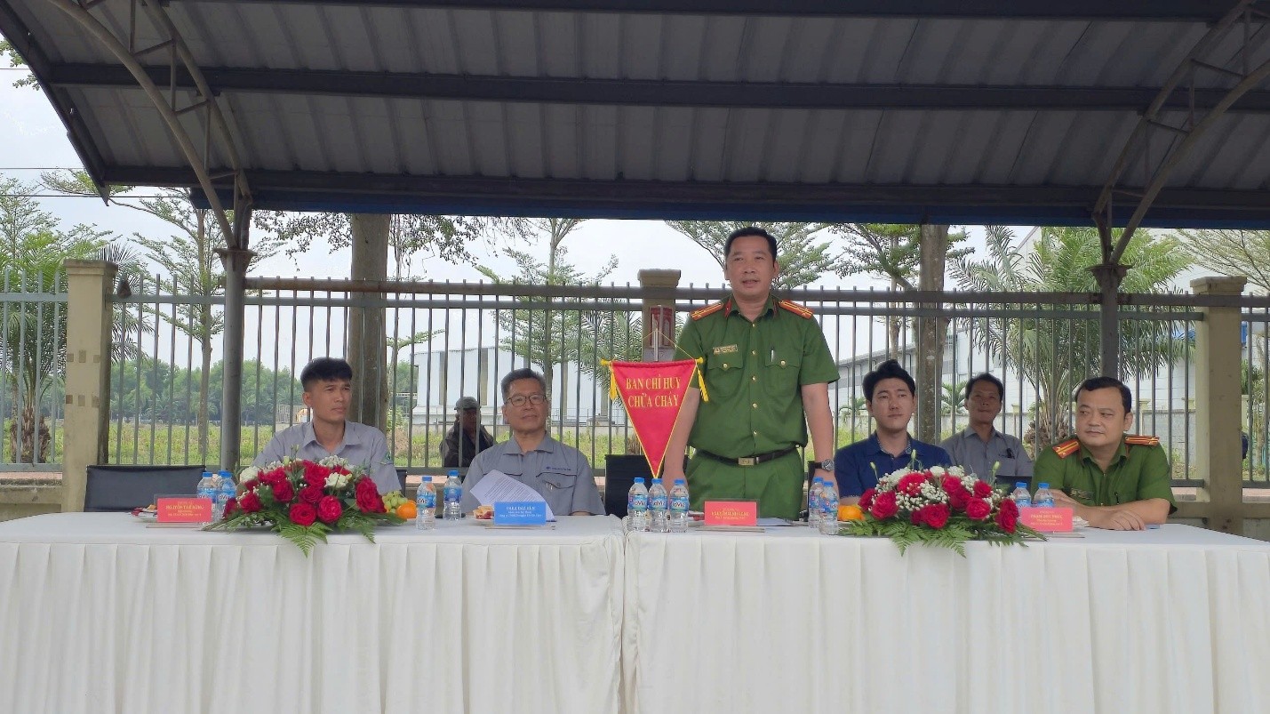 Thượng tá Nguyễn Đình Long – Phó Trưởng phòng Cảnh sát PCCC và CNCH dự và chỉ đạo buổi diễn tập.