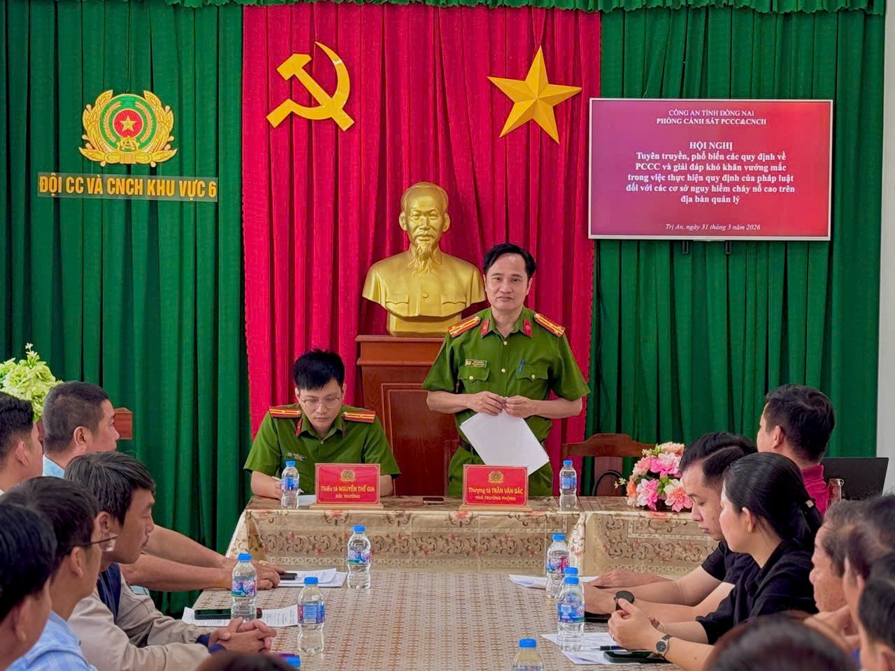 Hội nghị được tổ chức tại hội trường Đội Chữa cháy và CNCH Khu vực 6 với sự tham gia của trên 30 doanh nghiệp sản xuất, kinh doanh có nguy hiểm về cháy, nổ trên địa bàn xã Tân An và phường Tân Triều.