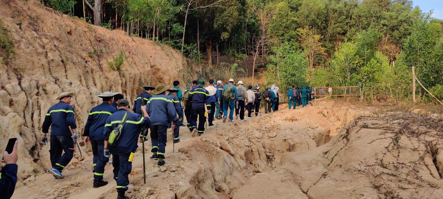 Các lực lượng chức năng tiếp cận khu vực rừng để sẵn sàng tham gia chữa cháy