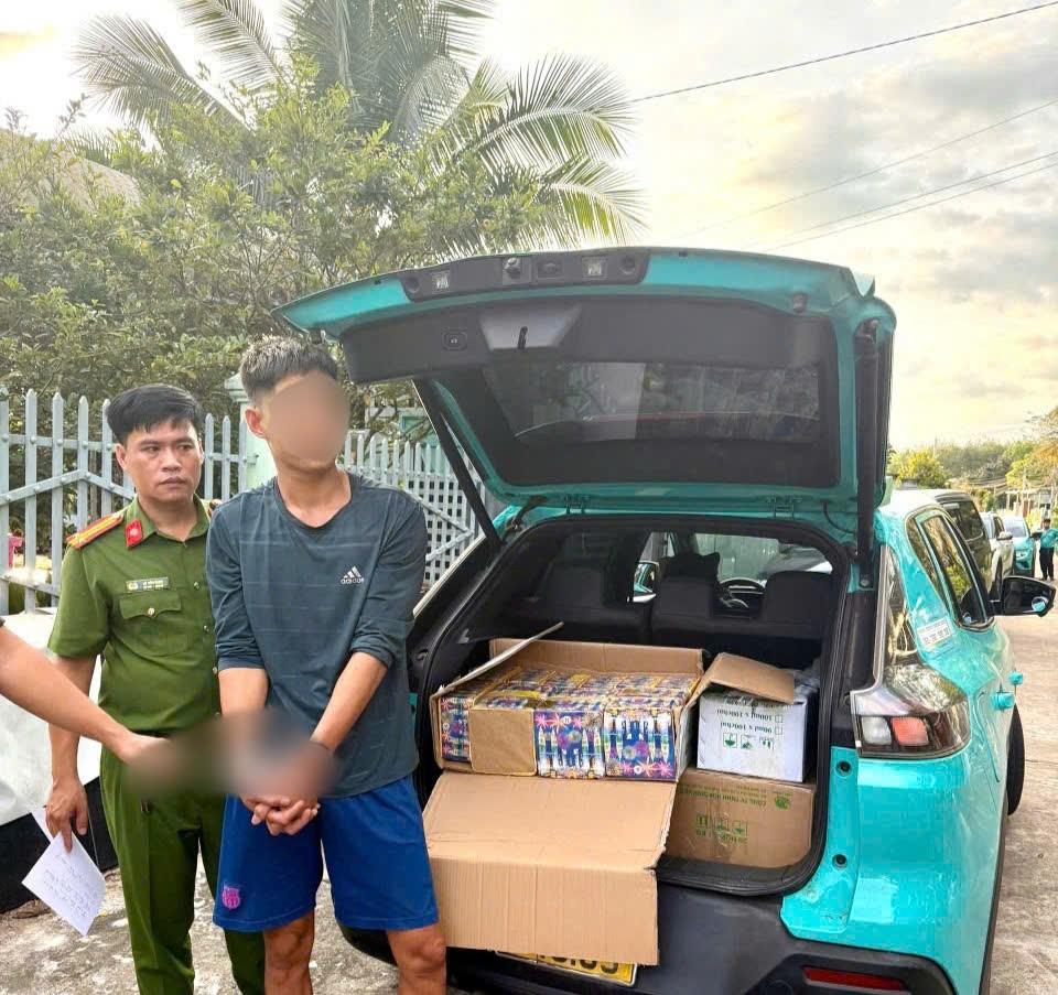 Qua sử dụng các biện pháp nghiệp vụ, ngày 17/12/2025, Công an xã Đồng Phú đã triển khai lực lượng bắt quả tang đối tượng Nguyễn Văn Hòa, SN 1991, thường trú thôn Thuận Hải, xã Thuận Lợi (Đồng Nai), sử dụng xe ô tô dịch vụ, biển kiểm soát 93H - 046.XX đang vận chuyển 40 khối hình hộp có tổng khối lượng 69,7kg (đối tượng khai là pháo hoa nổ), từ nhà đến hẻm 795 thuộc thôn Tân Liên, xã Đồng Phú để giao cho khách. Tổ công tác đã lập biên bản phạm tội quả tang đối tượng, niêm phong tang vật và phương tiện liên quan để điều tra làm rõ.
