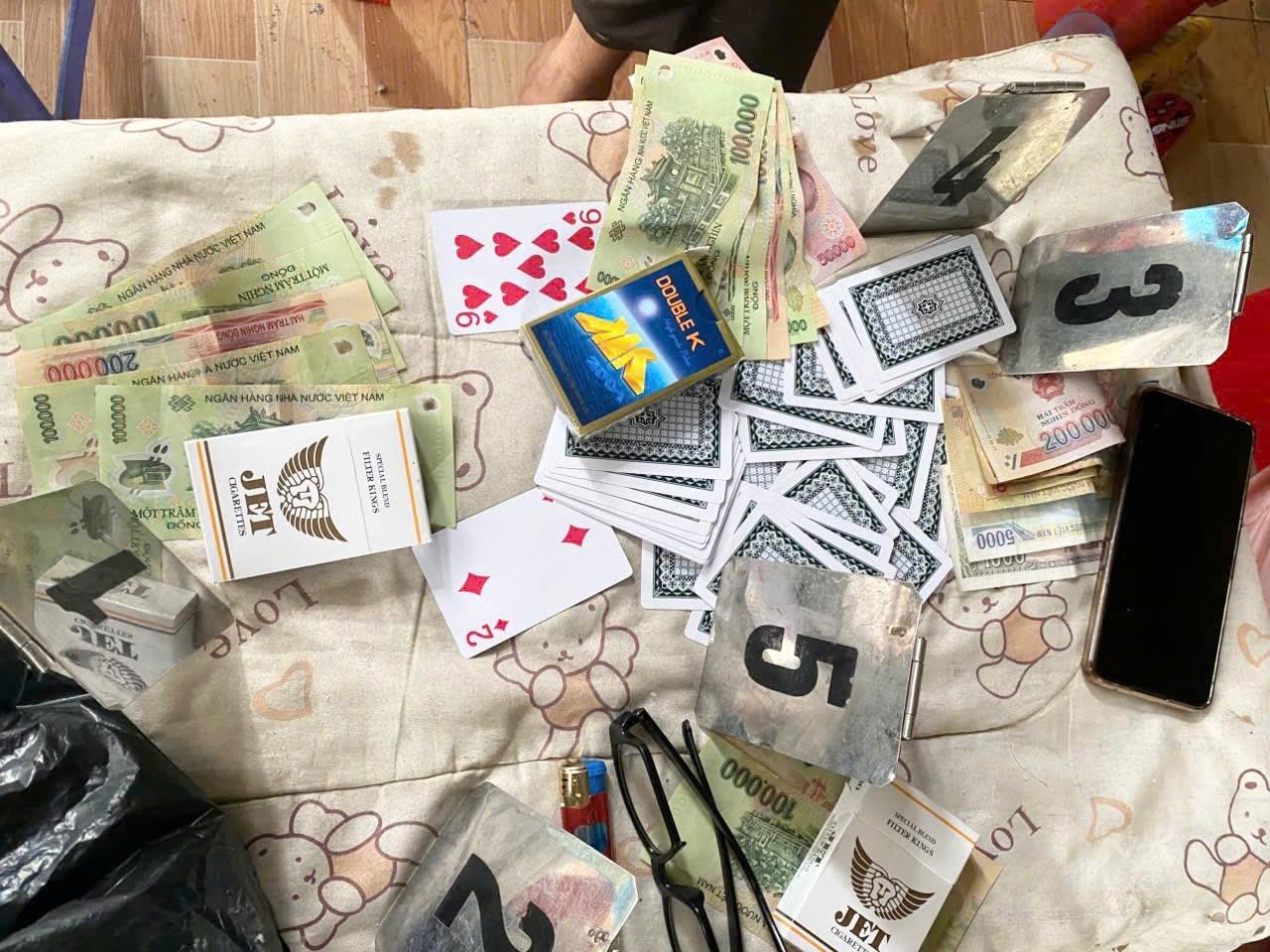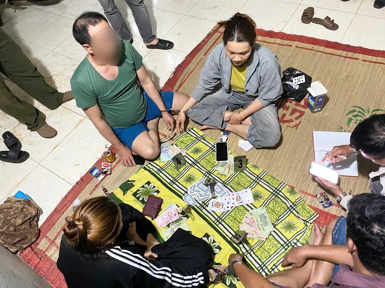 Công an xã đã tiến hành lập biên bản bắt người phạm tội quả tang đối với 8 đối tượng, gồm nam và nữ (ngụ trên địa bàn và ngoại tỉnh), trên 2 chiếu bạc Công an phát hiện thu giữ các tang vật như bài, tiền Việt Nam đồng nhiều mệnh giá với tổng số tiền 34.500.000đ.