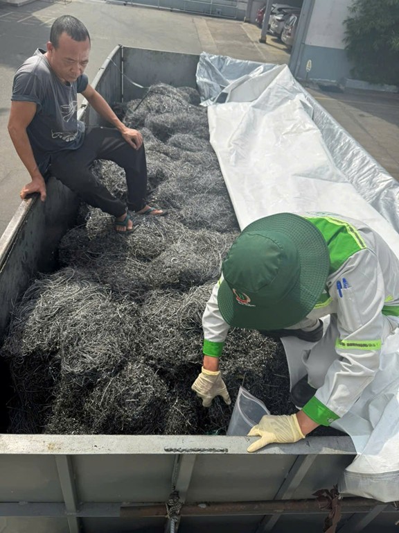 Phòng Cảnh sát kinh tế đã phối hợp với đơn vị chức năng tiến hành thu 01 mẫu chất thải rắn công nghiệp đang được lưu giữ trên thùng xe ô tô tải biển số 60C-553.22 và tạm giữ toàn bộ tang vật, phương tiện để tiếp tục xác minh, xử lý theo quy định của pháp luật.