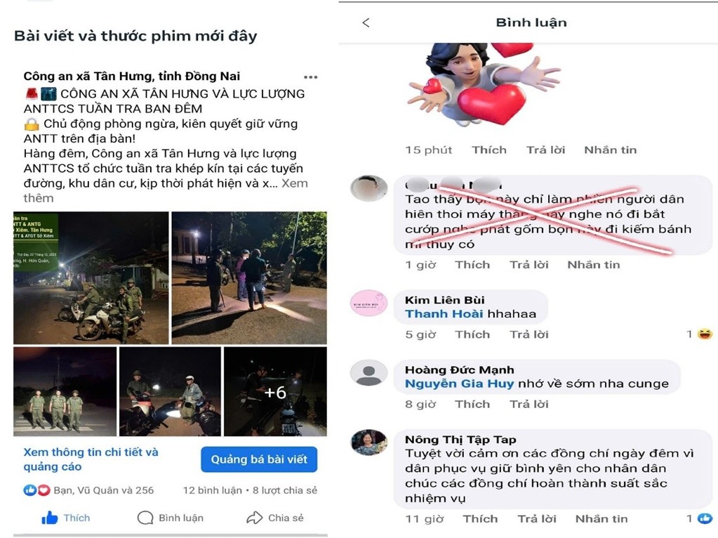 Theo đó, qua công tác nắm tình hình không gian mạng, Công an xã Tân Hưng phát hiện tài khoản Facebook cá nhân có nick name “Ch.V.Nh” có hành vi bình luận nội dung xuyên tạc, vu khống dưới bài viết phản ánh hoạt động tuần tra đêm của lực lượng Công an xã và lực lượng tham gia bảo vệ an ninh, trật tự ở cơ sở.