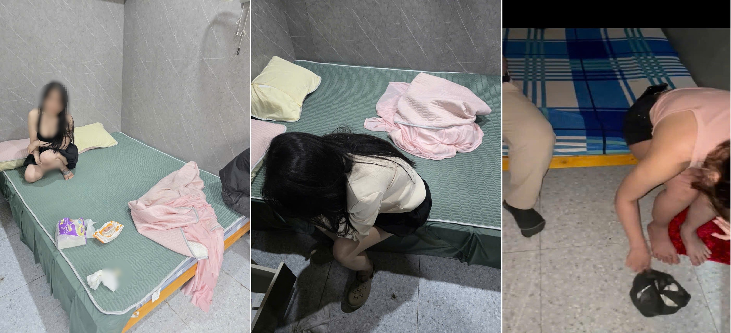 Qua kiểm tra, lực lượng Công an phát hiện tại nhiều phòng ngủ trong quán có hành vi mua bán dâm. Cụ thể, tại các phòng, Công an phát hiện N.T.K.Duyên (sinh năm 1990, trú tỉnh Đồng Tháp), V.T.Nga (sinh năm 1988, trú tỉnh Đồng Tháp) và V.N.Ngà (sinh năm 1998, trú tỉnh An Giang) có hành vi bán dâm cho các khách nam với giá 350.000 đồng/lượt. Các đối tượng khai nhận mỗi lượt bán dâm được hưởng 250.000 đồng, số tiền còn lại sẽ đưa cho chủ quán.