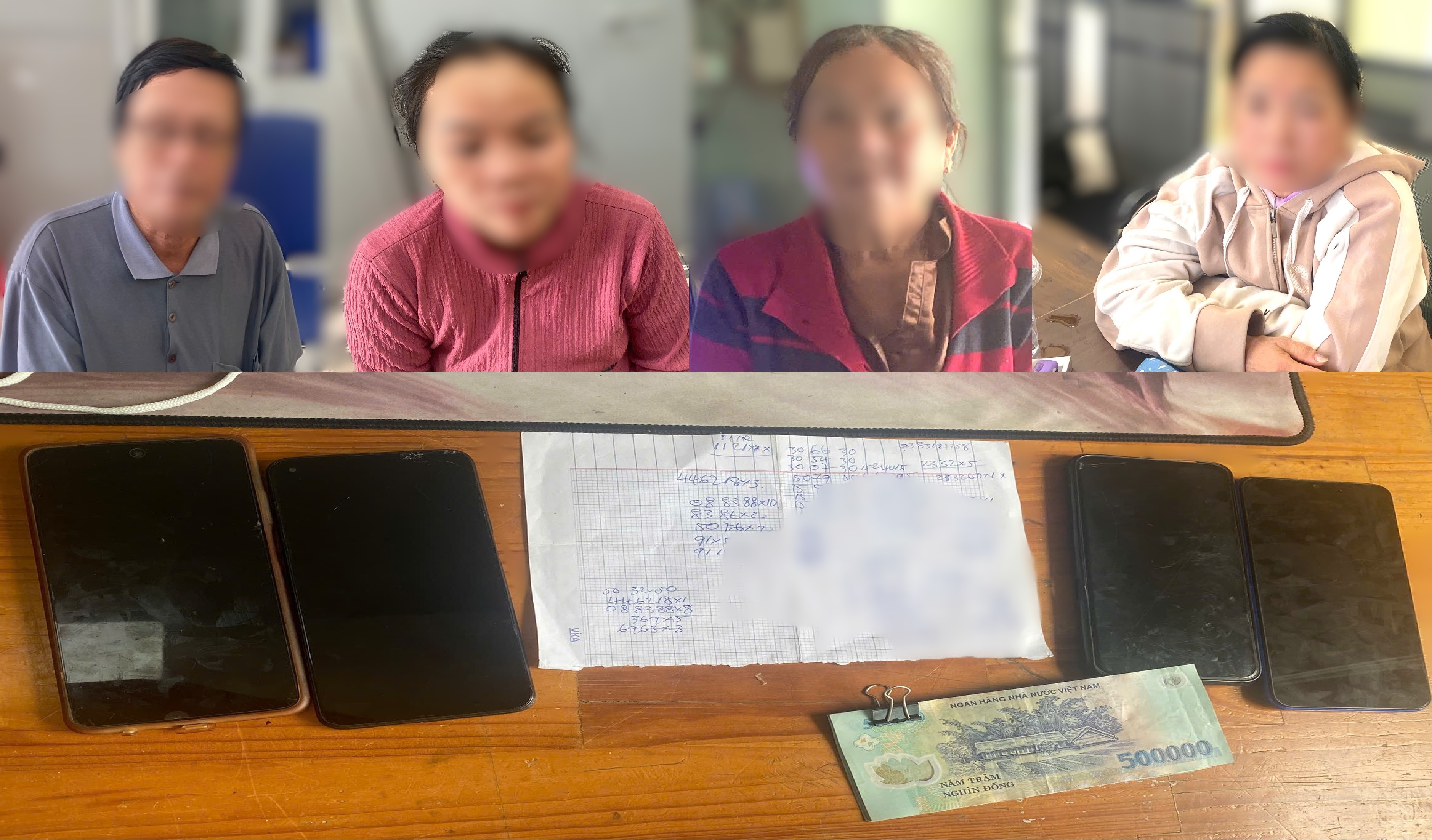 Qua đấu tranh, ông N khai nhận, ngày 20/1/2026, bà V.T.N (73 tuổi, chung sống với ông N như vợ chồng) đi bán vé số và bán số lô đề trên. Sau đó, mang về đưa cho ông để giao cho bà L.T.B (51 tuổi), ngụ tại địa phương nhằm hưởng hoa hồng. Mở rộng điều tra, Cơ quan Công an làm việc với một số người khác có liên quan, tạm giữ vật chứng 4 điện thoại di động, 1 phơi đề và hơn 8,4 triệu đồng.