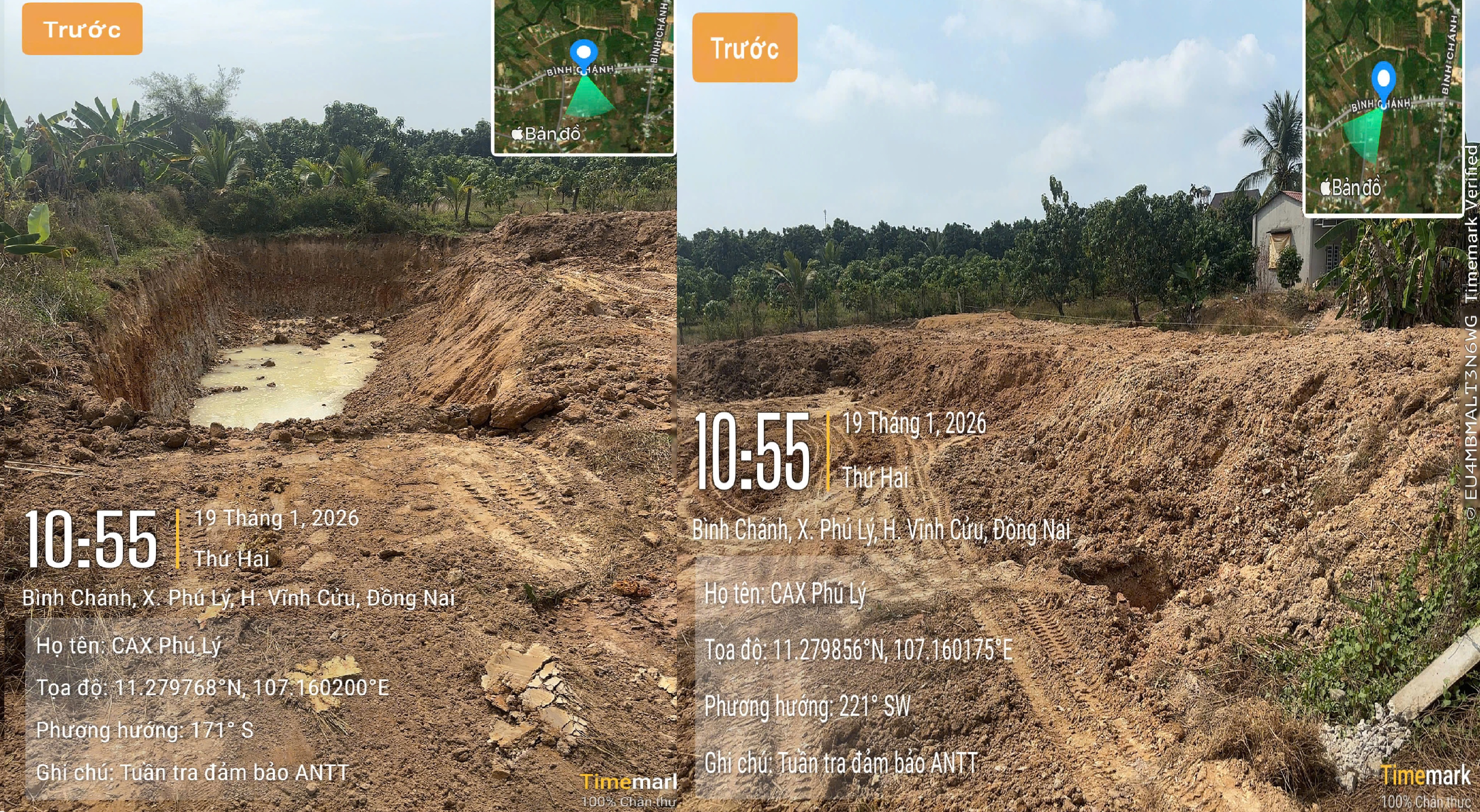 Qua kiểm tra thửa đất số 396, tờ bản đồ số 61, thuộc ấp Bình Chánh, do bà Nguyễn Thị Nhung (SN 1976, ngụ xã Phú Lý) đứng tên quyền sử dụng, lực lượng chức năng phát hiện một phần diện tích đất trồng cây lâu năm đã bị đào bới, làm biến dạng địa hình. Cụ thể, khu vực đất bị moi múc có diện tích khoảng 28m², độ sâu khoảng 2,5m so với mặt bằng chung; lượng đất đào lên được sử dụng để san lấp tại chính thửa đất này và thửa đất liền kề. Thời điểm kiểm tra không phát hiện phương tiện thi công.